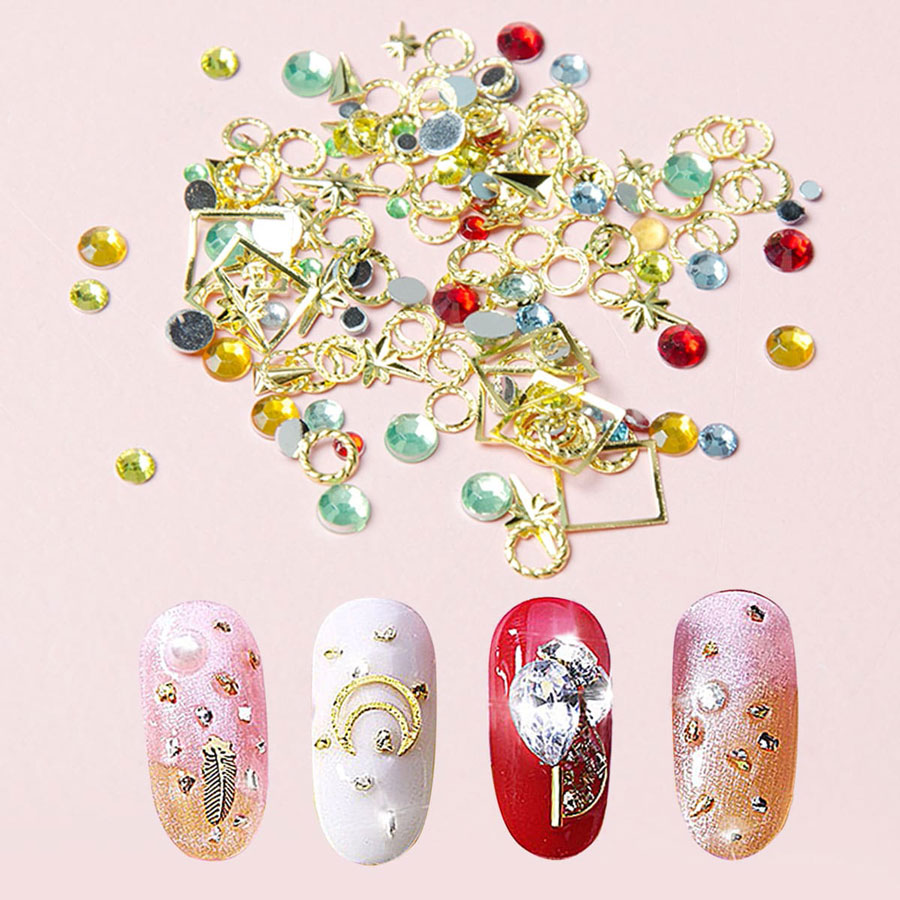 Décorations Nail Art 3D : coquillage doré, étoile de mer, clous métalliques, strass, formes géométriques, etc.