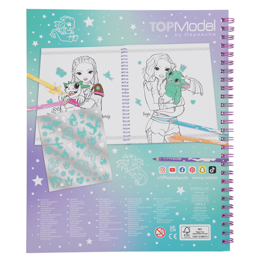 D’une beauté magique : le livre de coloriage de la série TOPModel Dragon World. 20 pages à colorier recto-verso avec des motifs du monde mystique des dragons. Le plus : une planche de stickers pour embellir l’oeuvre. Avec une jolie application dragon en tissu et des paillettes sur la couverture.