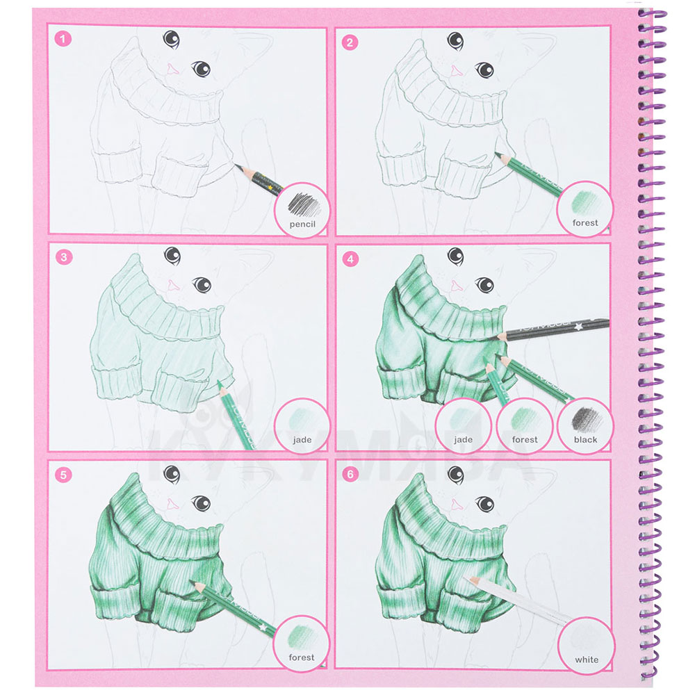 – 2 feuilles de couvertures avant et arrière qui incluent également des exemples d’artistes pour vous aider à créer d’adorables chatons.