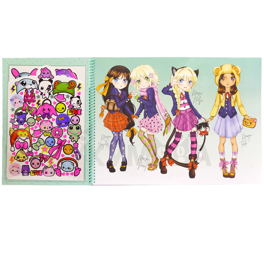 Livre de coloriage avec des autocollants pour créer des modèles de style Manga.
