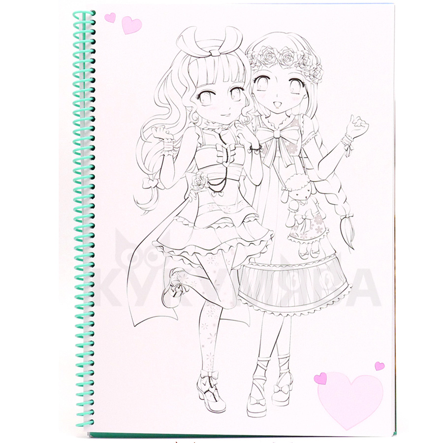 Livre de coloriage avec des autocollants pour créer l’image des Top Models dans le style de l’anime japonais Manga. A l’intérieur de l’album il y a 38 feuilles montrant les contours des modèles, des exemples de vrais artistes et 2 feuilles d’autocollants.