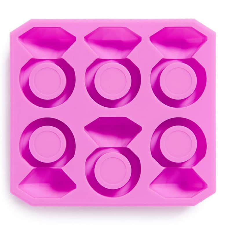 Les boissons ont besoin de bling, aussi. Parfait pour les fiançailles, les fêtes de mariage, les soirées entre filles et bien plus encore, ce bac flexible permet de réaliser des magnifiques glaçons en forme de bagues avec diamant. Convient également très bien pour couler des formes en chocolat. En chocolat, ces formes feront une super décoration sur un gâteau à thème. En glaçon, ça changera des formes classiques dans votre cocktail.