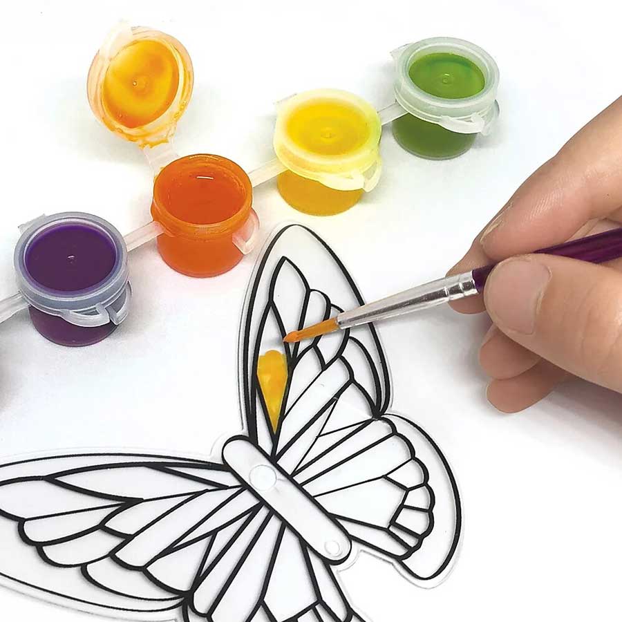 Crée des bijoux de fenêtre magiques. Peins les pièces pré-découpées, ajoute des strass pour ensuite les attacher à une ventouse à l’aide d’une cordelette et de perles.