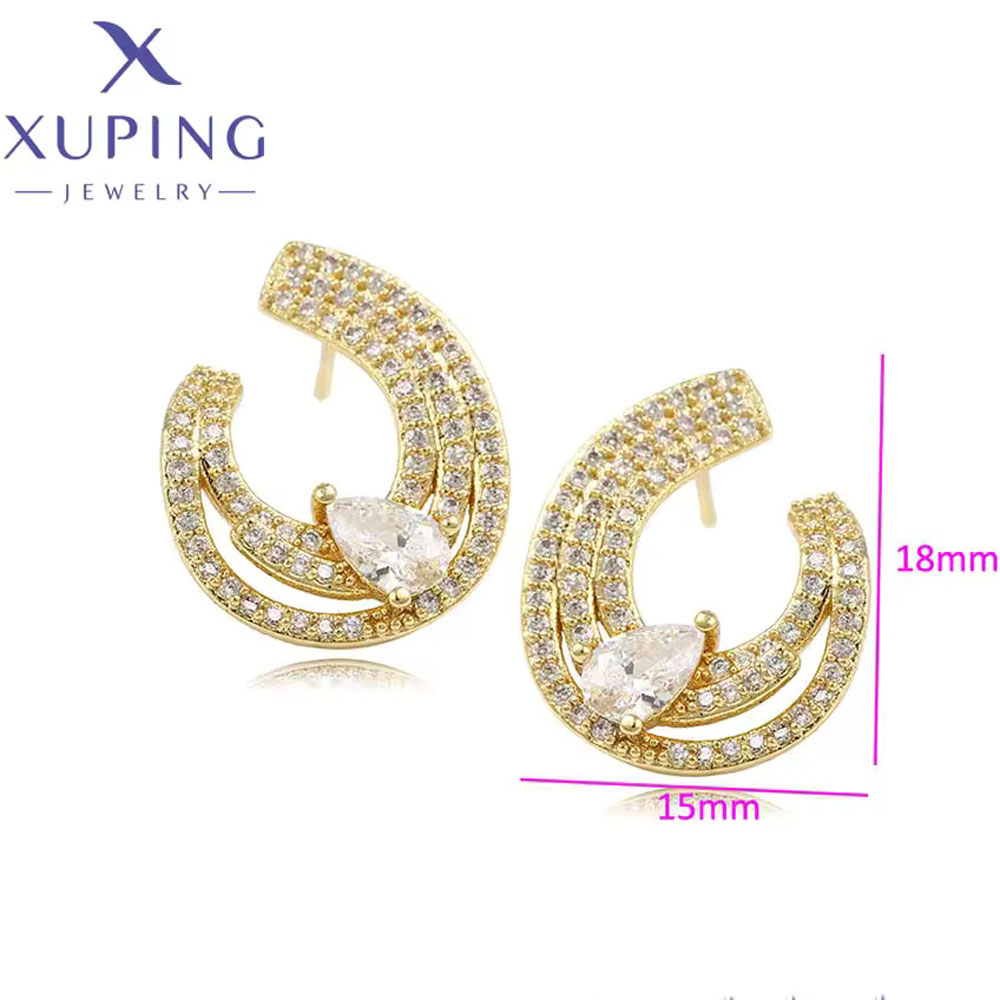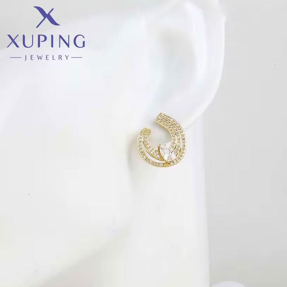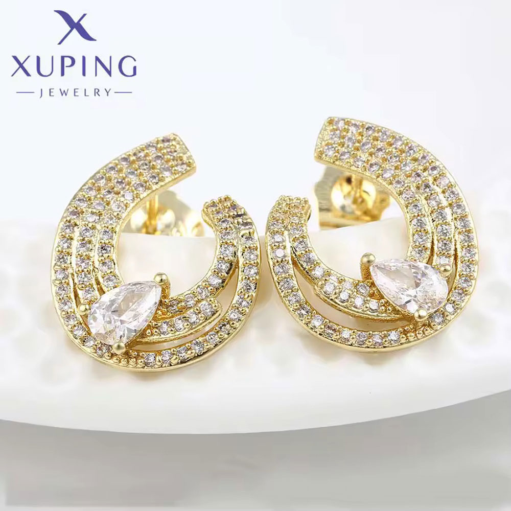 BOUCLES D’OREILLES XUPING DORÉES 18K – DESIGN CERCLE LUXE & ZIRCON POIRE