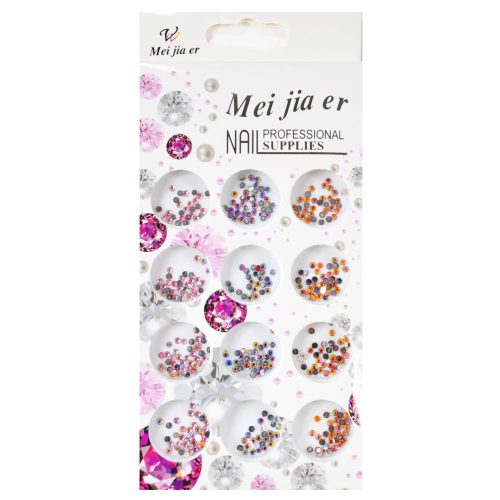 Assortiment de strass ronds de différentes couleurs et tailles.