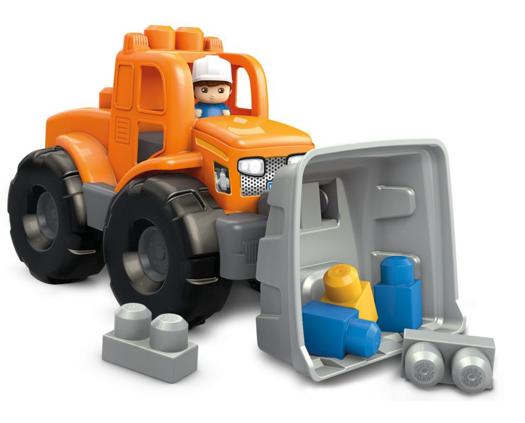 Camion benne jaune 2 en 1 de 25cm de long avec un personnage inclus. Dans un premier temps c’est un transporteur avec sa benne pour entreposer les 9 maxi briques incluses dans le pack et dans un deuxième temps, le camion se transforme en une pelleteuse: la partie benne se retrouve à l’avant et permet à l’enfant d’avoir un petit tracteur pour compléter son univers de la ferme.