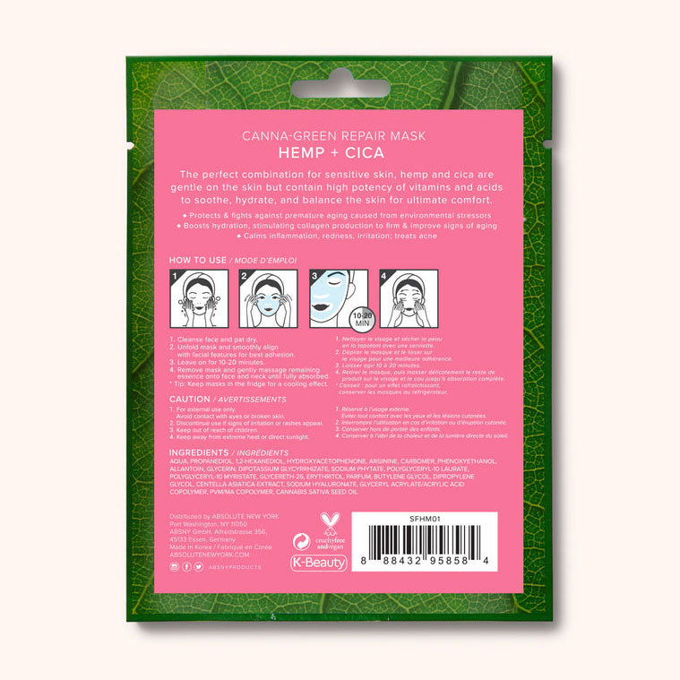 Le Masque Chanvre + Centella : parfaits pour les peaux sensibles, le chanvre et la centella sont des ingrédients doux pour tous types de peau, mais ont une forte puissance de vitamines et d’acides pour apaiser, réparer et équilibrer la peau pour un confort et une hydratation ultimes.