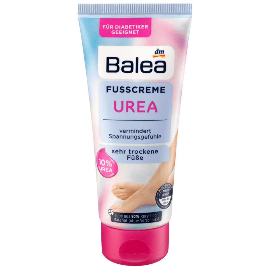 Réduit les sensations de sécheresse et de tension : la crème pour les pieds Balea avec 10 % d’urée hydrate intensément et protège efficacement votre peau du dessèchement. La formulation au complexe de soins HydroPlus composé à 10 % d’urée hydratante, de panthénol et de glycérine prend soin de vos pieds d’une douceur remarquable. De plus, la formule de soin à la vitamine B3 soutient la fonction protectrice naturelle de la peau. La texture crémeuse est facile à répartir et pénètre rapidement