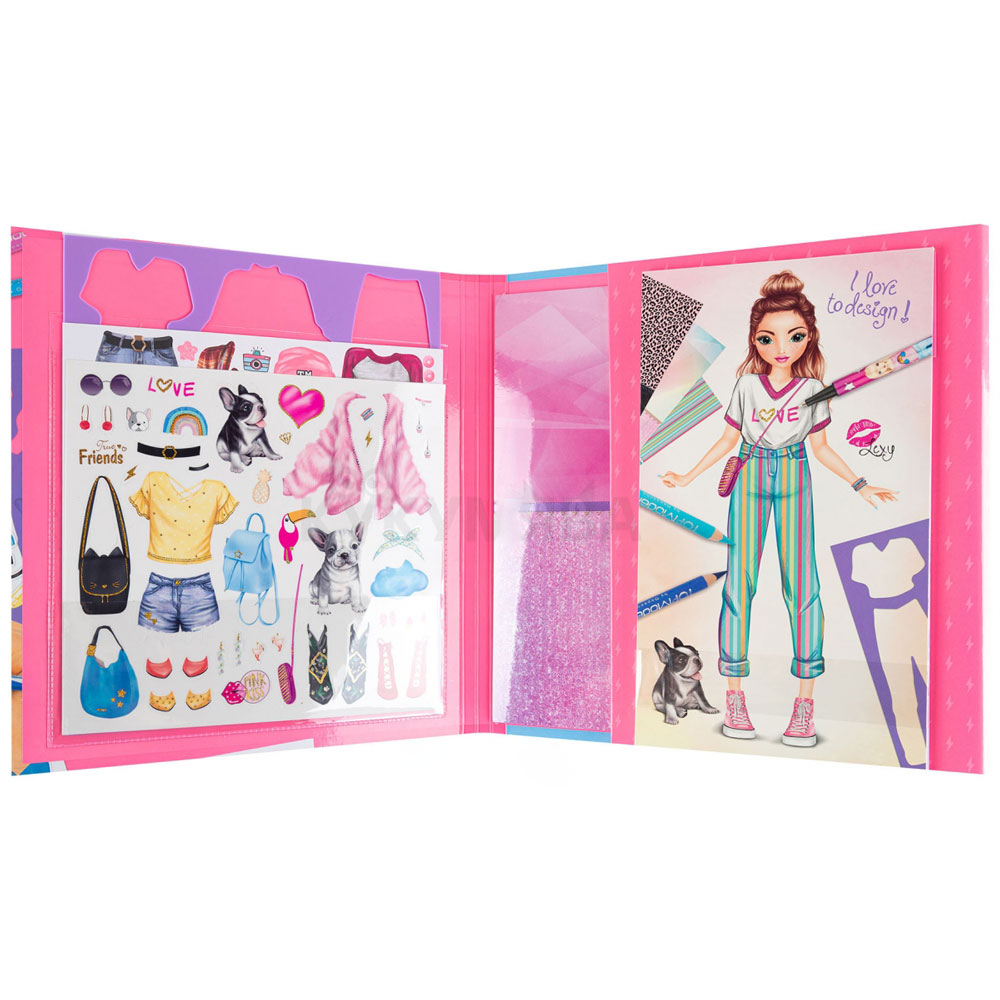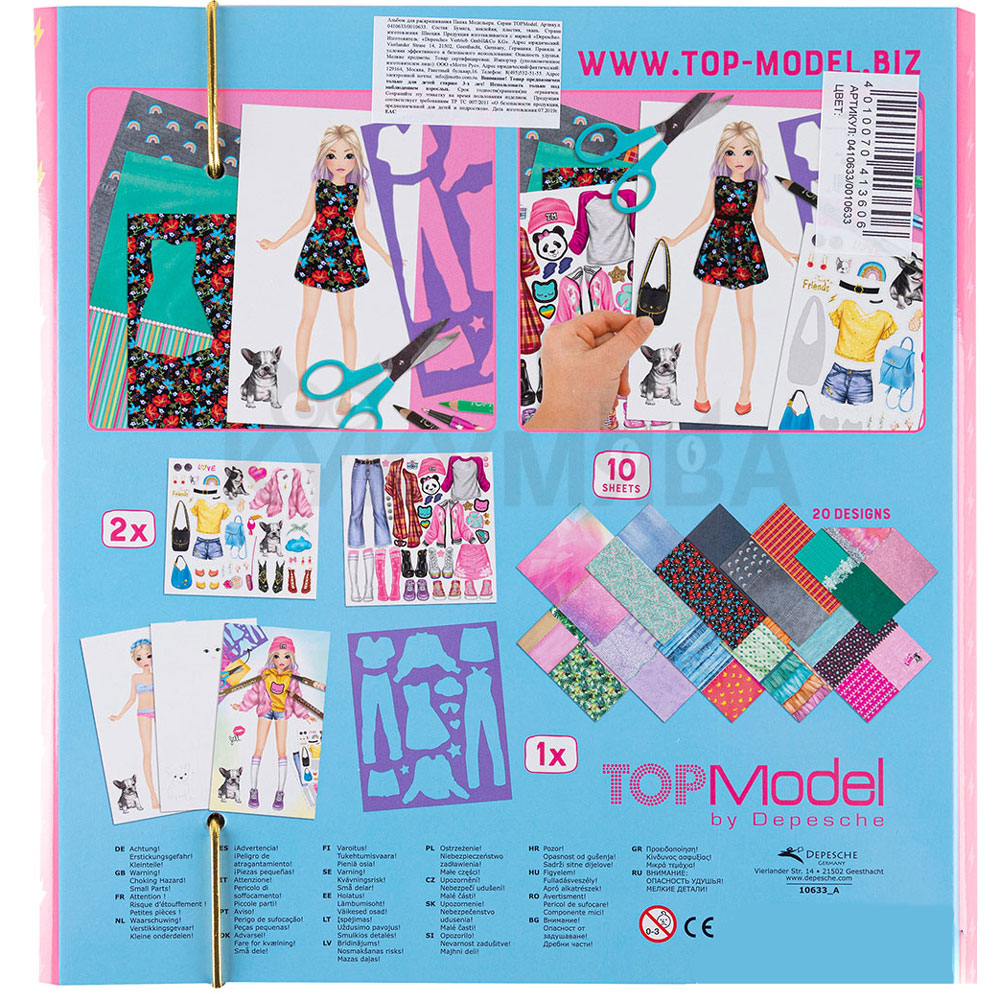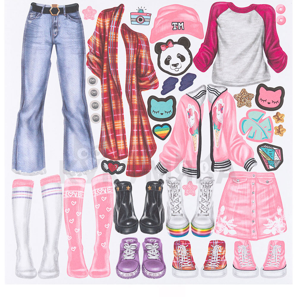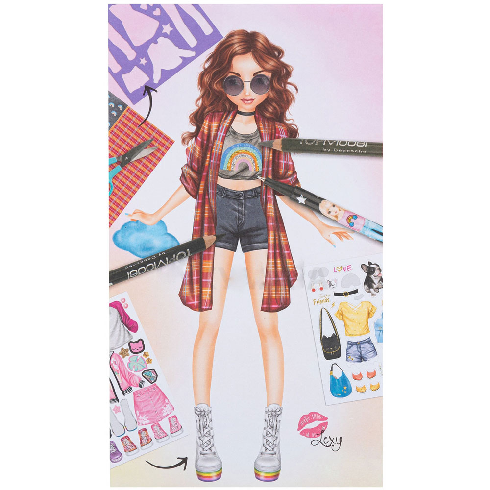 Voici un album créatif sous forme de pochette de la collection Top model. Votre fille pourra s’adonner à son loisir préféré en inventant et créant des tenues stylisées grâce aux planches de stickers, aux deux pochoirs et aux 30 designs inclus dans cette pochette. De nombreuses heures de coloriage et de création en perspective pour agrémenter ses journées.