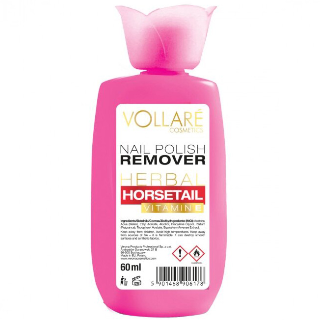 Les dissolvants pour vernis à ongles Vollaré Cosmetics à l’acétone sont enrichis en vitamine E et en extraits de plantes. Ils enlèvent efficacement le vernis à ongles et offrent aux ongles un soin et une protection optimaux en même temps. Cinq variantes sont disponibles : extrait de graines de lin, extrait de bardane, extrait de calendula, extrait d’ortie et extrait de prêle des champs.