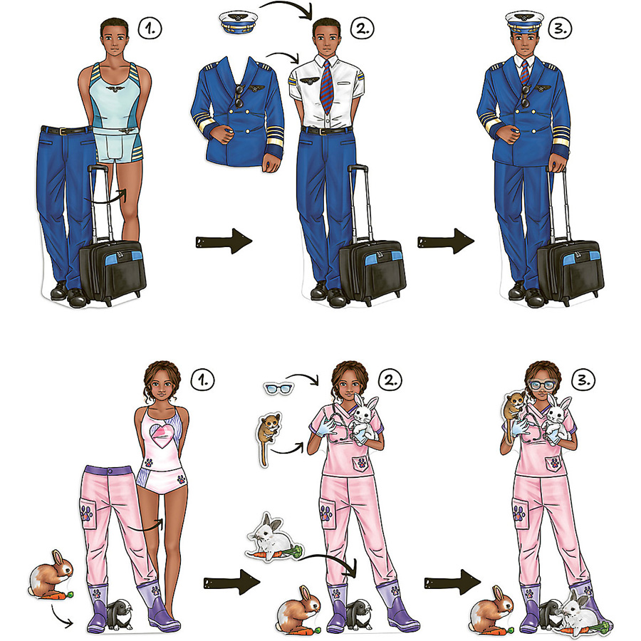 Avec ce livre d’autocollants, vous pouvez aller dans tous les sens quand il s’agit de professions. Pompier, vétérinaire, boulanger, policière, astronaute, ramoneur et bien plus encore : vous trouverez tout cela dans le livre d’autocollants Dress Me Up Jobs ! Dans le livre, vous trouverez 24 pages avec des modèles que vous pourrez habiller avec les 11 feuilles d’autocollants dans les tenues qui conviennent à des professions spécifiques. Amuse toi au travail!