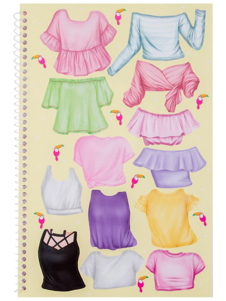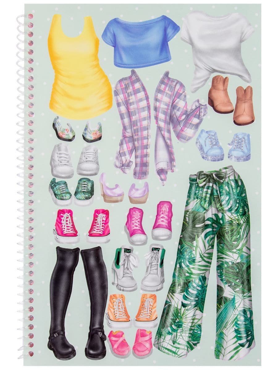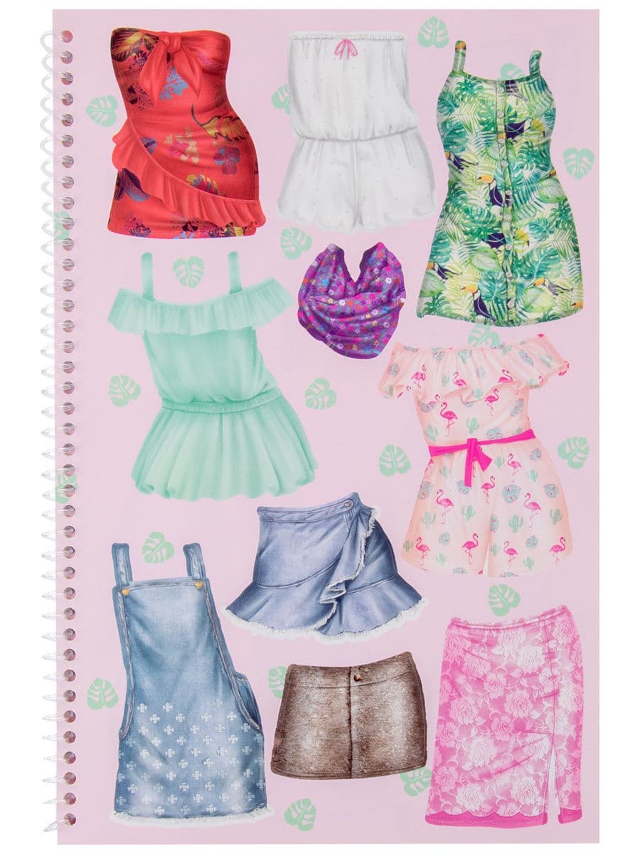 L’Abum créatif DRESS ME UP TROPICAL contient des autocollants pour créer les images les plus jolies et les plus stylées de Top Models. Il contient 24 pages dédiées à la créativité avec l’image des contours colorés des modèles qui doivent être habillés avec une variété de vêtements à l’aide de nombreux autocollants uniques. Il y a 186 autocollants dans l’album: 5 feuilles d’autocollants ordinaires pour la décoration et 2 feuilles d’autocollants en feuille avec effet irisé, ainsi que des œuvres toutes faites d’artistes afin que les jeunes stylistes puissent s’inspirer de nouvelles idées.