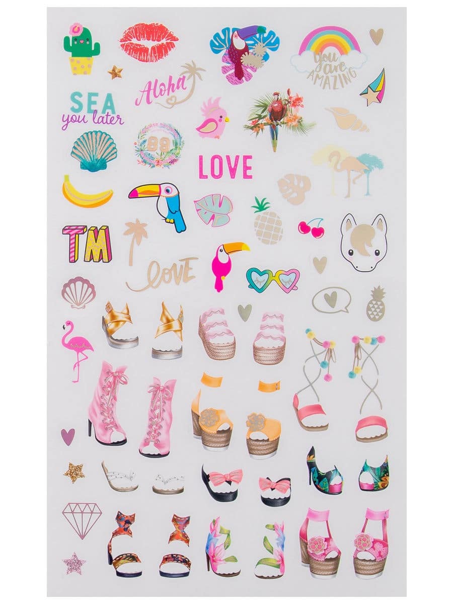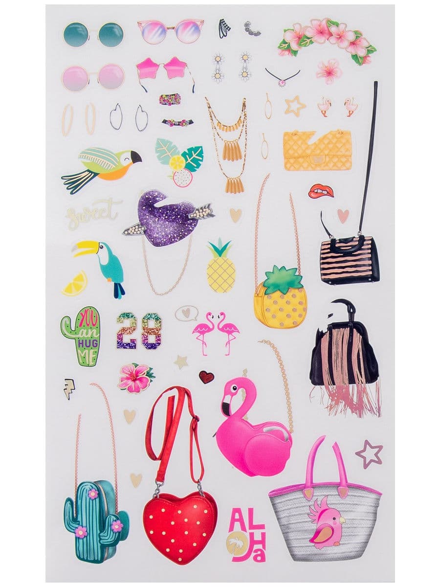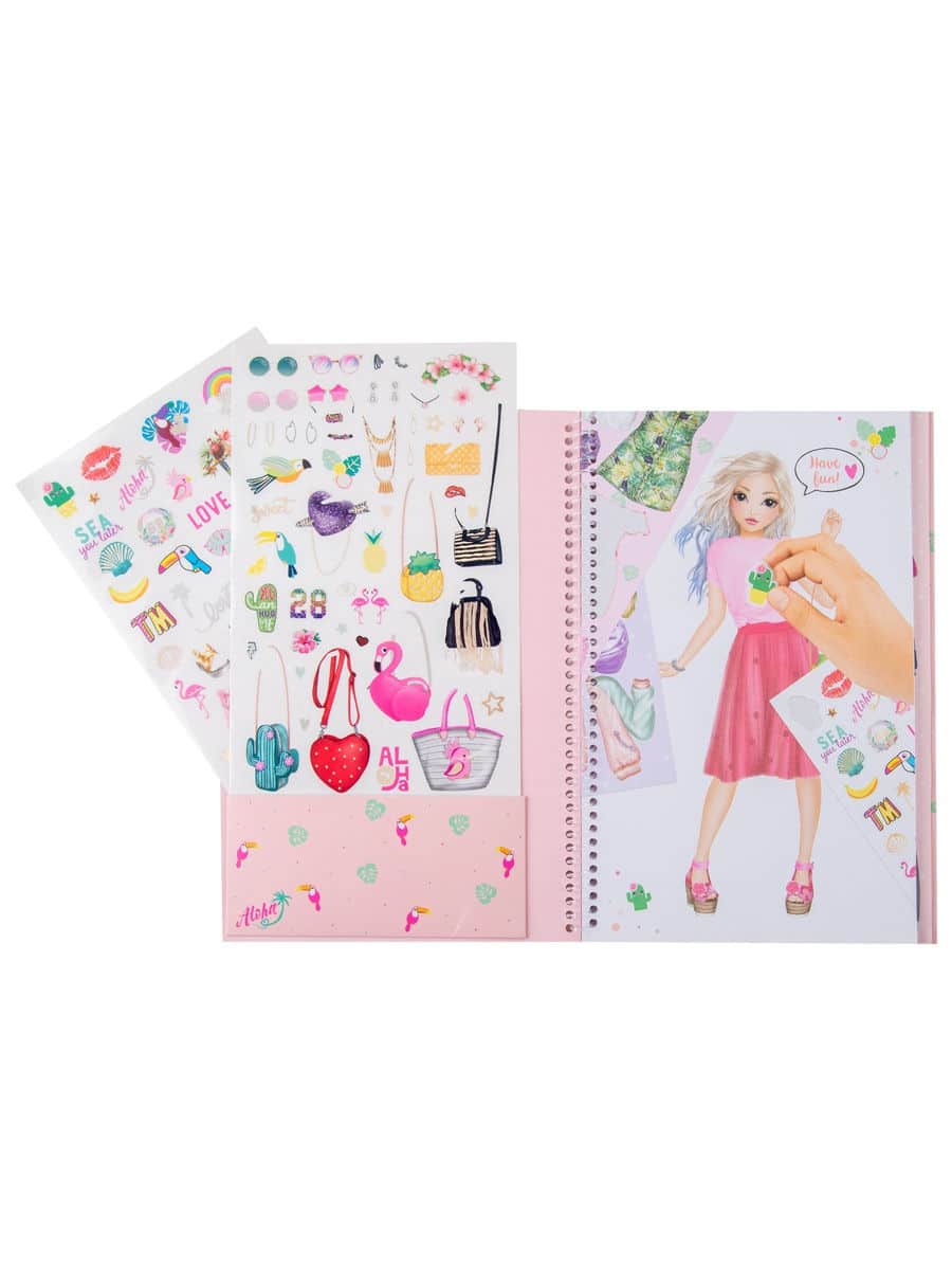 L’Abum créatif DRESS ME UP TROPICAL contient des autocollants pour créer les images les plus jolies et les plus stylées de Top Models. Il contient 24 pages dédiées à la créativité avec l’image des contours colorés des modèles qui doivent être habillés avec une variété de vêtements à l’aide de nombreux autocollants uniques. Il y a 186 autocollants dans l’album: 5 feuilles d’autocollants ordinaires pour la décoration et 2 feuilles d’autocollants en feuille avec effet irisé, ainsi que des œuvres toutes faites d’artistes afin que les jeunes stylistes puissent s’inspirer de nouvelles idées.