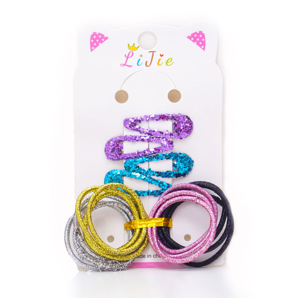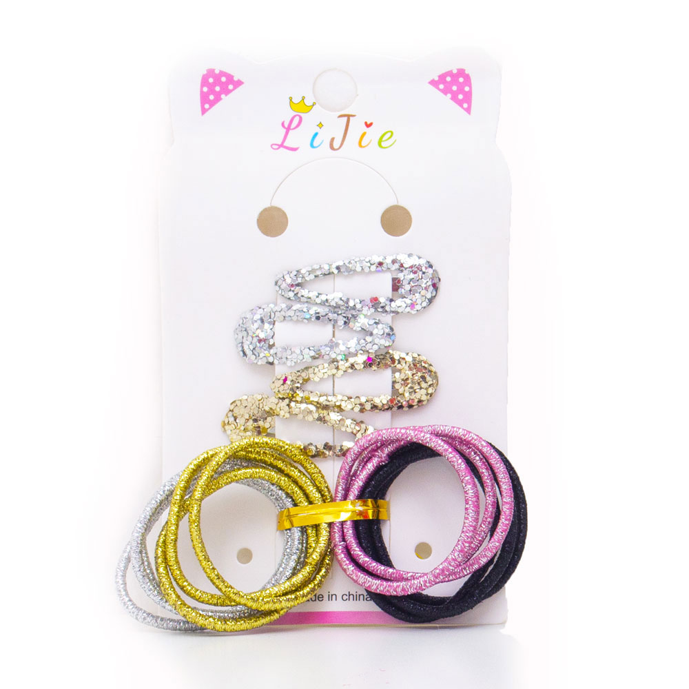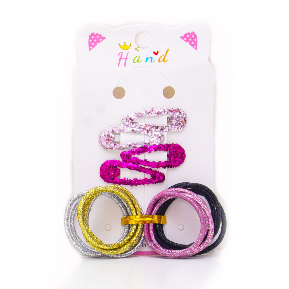 Ensemble de cheveux lumineux et confortable. Un ensemble de 16 accessoires pour cheveux de Hand FASHION sera un excellent cadeau pour une fille. Comprend 12 élastiques à paillettes, 4 épingles Cheveux Clic Clac à paillettes.