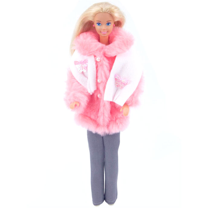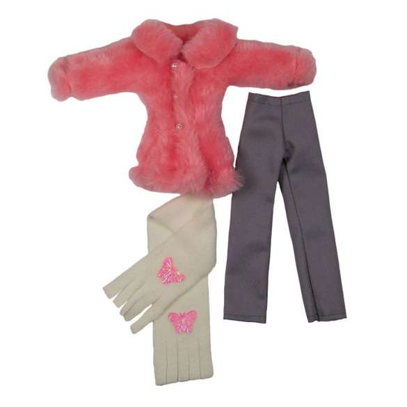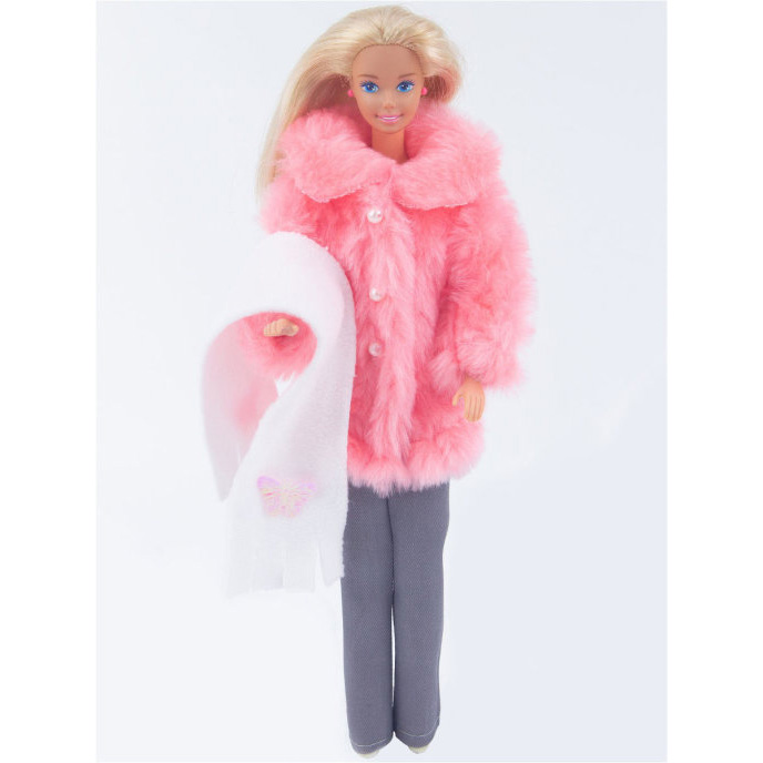 Vêtements pour Barbie : manteau de fourrure court, pantalon et écharpe