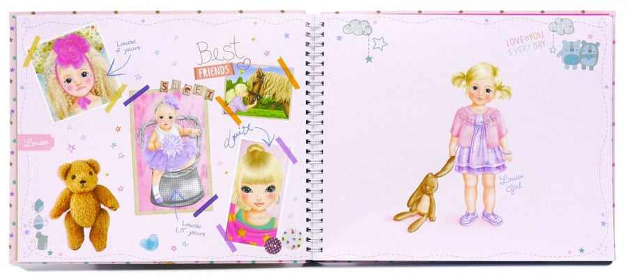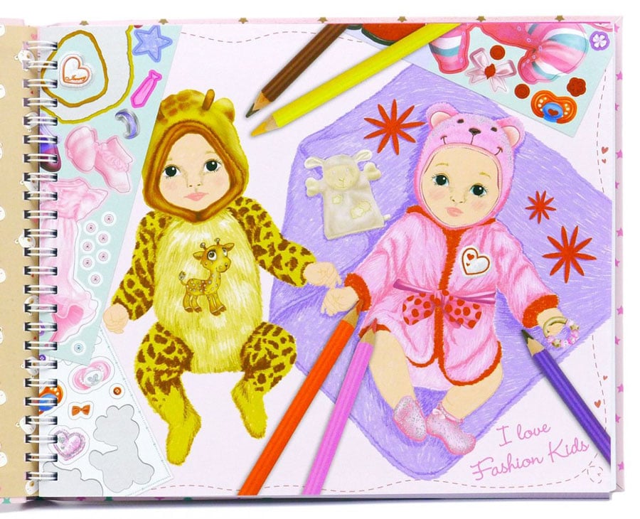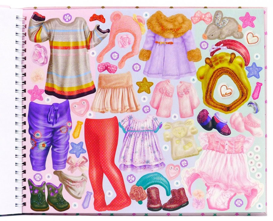 L’album est dédié à la création de vêtements pour vos top modèles préférés, quand ils étaient des enfants et des bébés. Le livre permet non seulement d’admirer des images amusantes, mais également de dessiner de jolis costumes pour enfants sur les contours présentés. Vous pouvez également décorer les vêtements créés avec des autocollants en velours. L’album possède une couverture épaisse est fermée sur une bande élastique veloutée et contient 54 feuilles, dont 3 feuilles avec des autocollants.