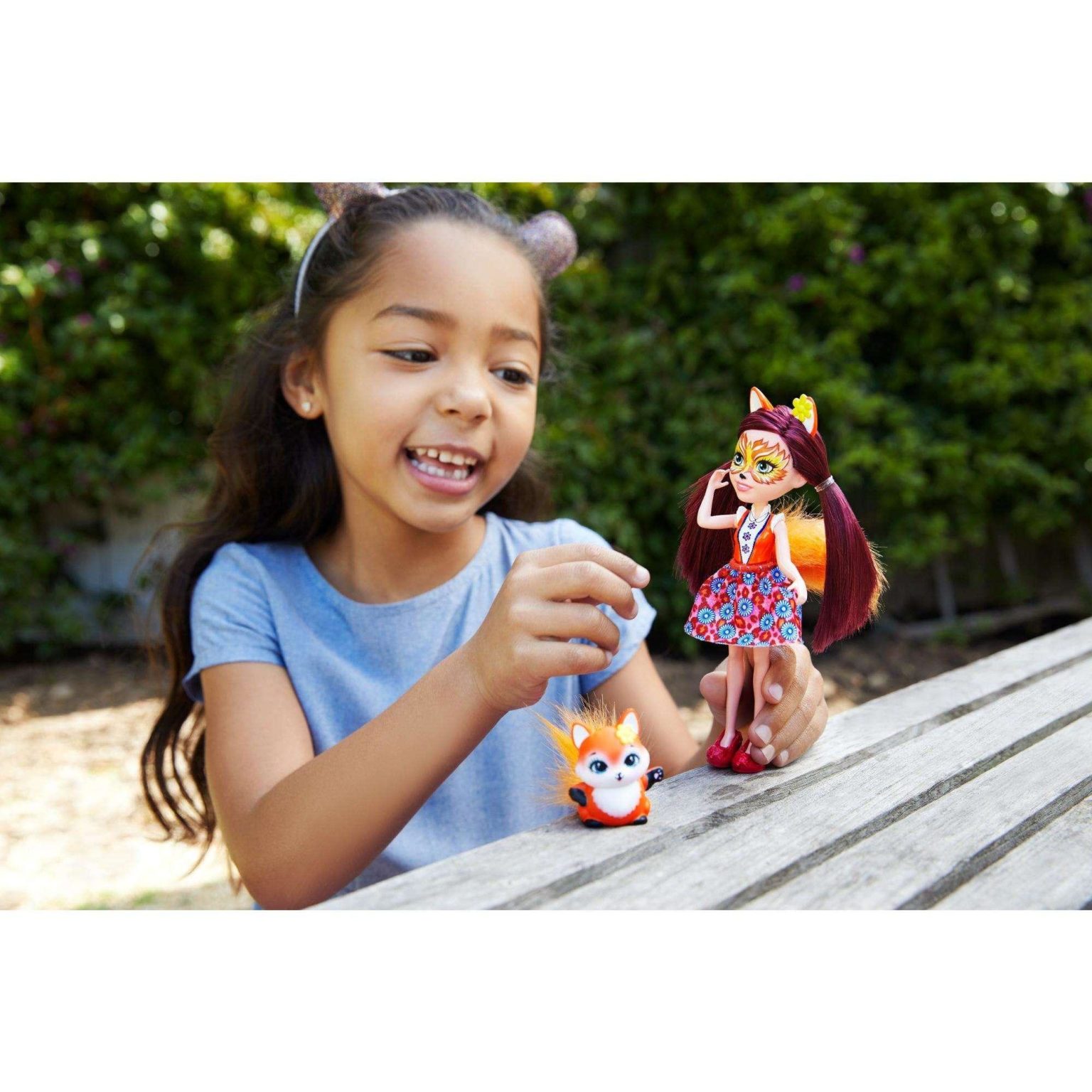 Poupée Felicity Fox aux cheveux bruns souples et cousus, avec un ravissant visage maquillé à l’image de son animal fétiche. Livrée avec une mini figurine animal Flick. Collectionnez les 6 mini poupées mi-humaines mi-animaux et partagez avec elles le monde des Enchantimals, là où la nature et l’amitié existent en parfaite harmonie.