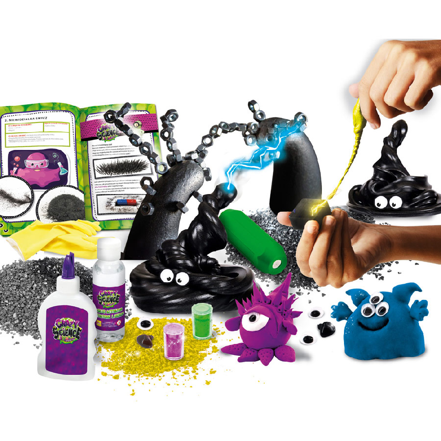 Totalement unique dans son approche, ce kit engage les enfants en les aidant à créer des polymères et des fluides qu’ils peuvent ensuite manipuler avec des aimants. De plus, leur imagination transformera leurs fluides en bêtes lorsqu’ils ajouteront les yeux et le nez des monstres inclus.