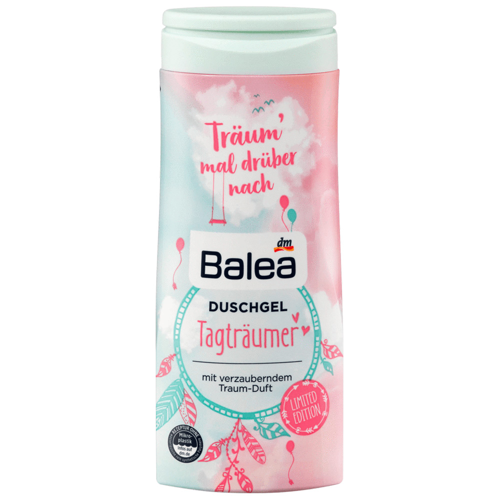 Gel douche Balea Tagtraumer au parfum de rêve enchanteur. Le gel douche a une saveur sucrée de baies de bonbon. La formule douce du gel douche nourrissant et hydratant protège la peau du dessèchement et lui donne une douce élasticité. Convient aux peaux sensibles. Formulé sans microplastiques et polymères purement synthétiques hydrosolubles.