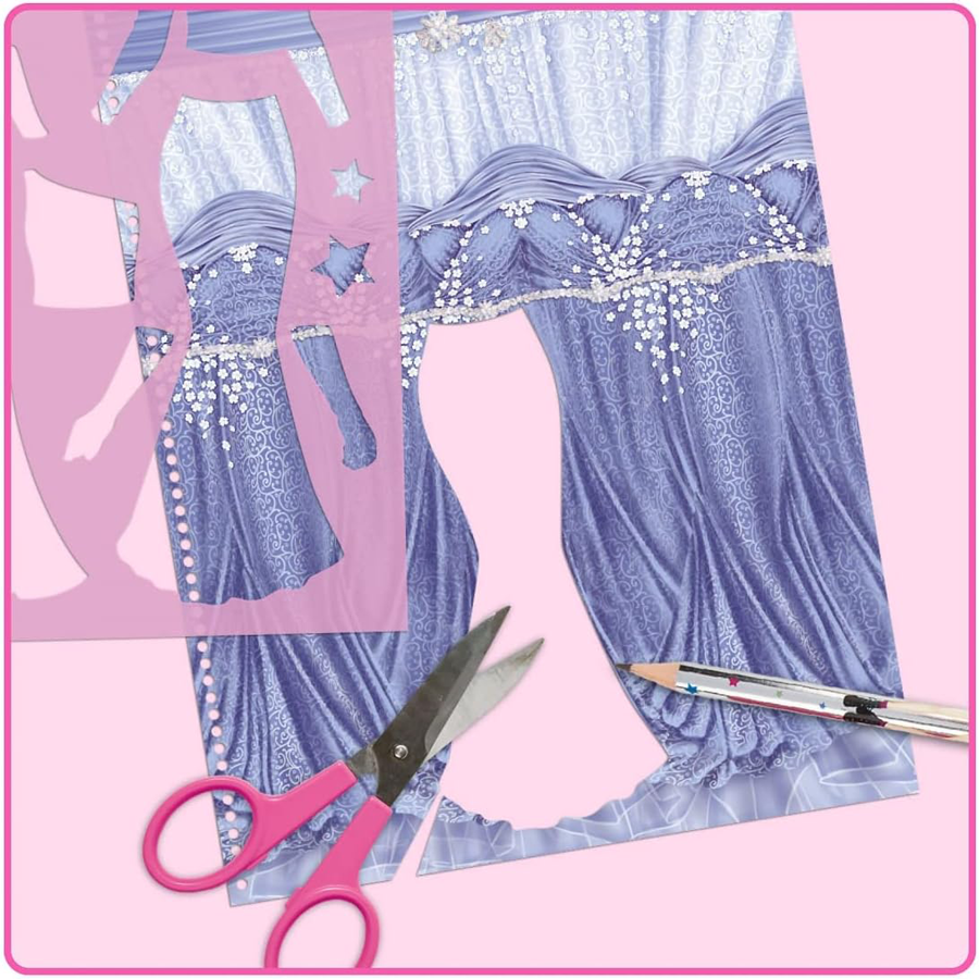 Le livre de coloriage est dédié à la création de robes de soirée luxueuses. Les filles peuvent créer indépendamment différents modèles de corsets élégants, de jupes volantes, de coiffures de soirée, de chaussures élégantes, découper des vêtements à l’aide de pochoirs à partir des échantillons de tissu en papier coloré présentés, ou colorier avec des crayons, compléter des autocollants prêts à l’emploi avec des tenues, ou regarder des conseils de designers dans l’album.