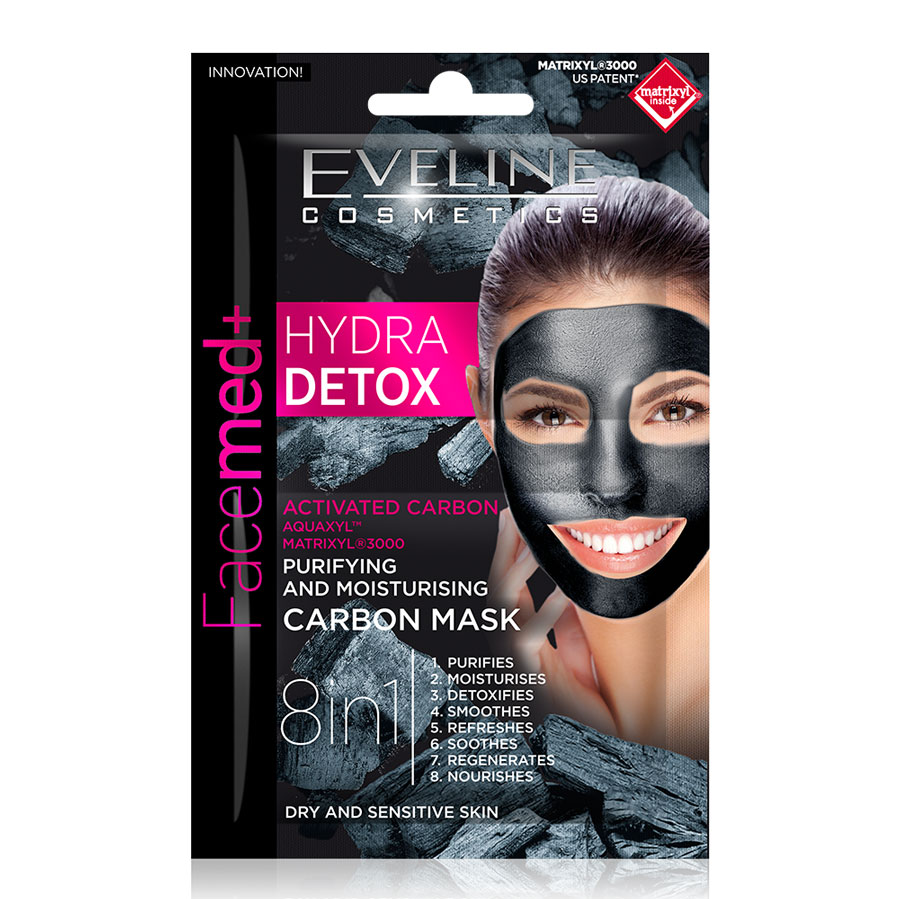 Masque au charbon purifiant et hydratant 8 en 1 pour les peaux sèches et sensibles purifie efficacement, régénère intensément et prévient le dessèchement, laissant la peau idéalement lisse et douce.