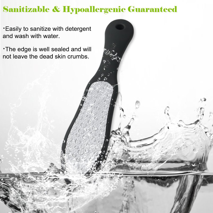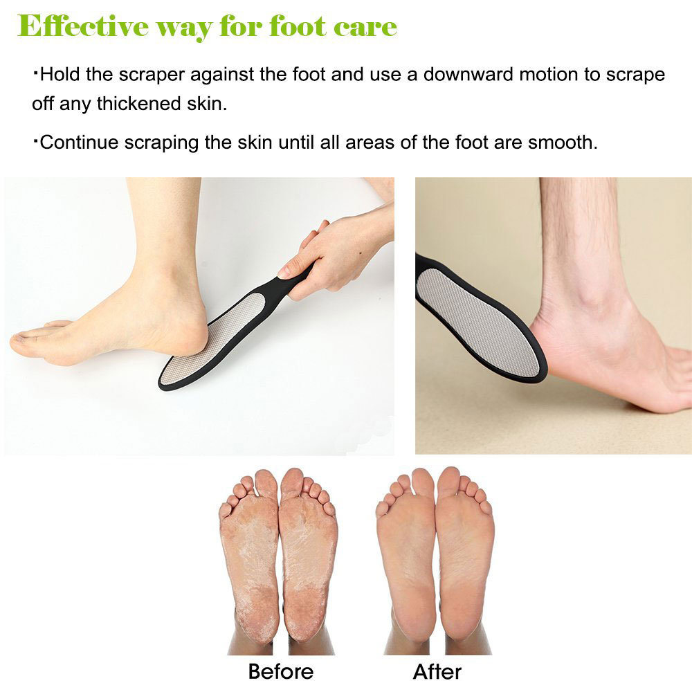 Surface en acier inoxydable de qualité chirurgicale avec lame tranchante appropriée qui fonctionne instantanément pour raser les couches de callosités séchées et les peaux dures, peut être utilisée sur les pieds humides et secs.
