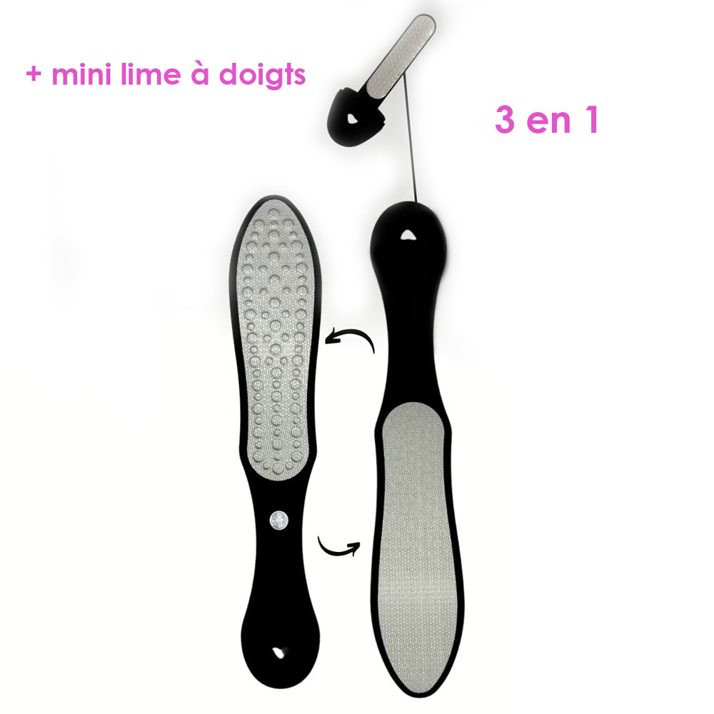 - Le deuxième côté lisse les rugosités et donne un aspect soigné et complet au pied.