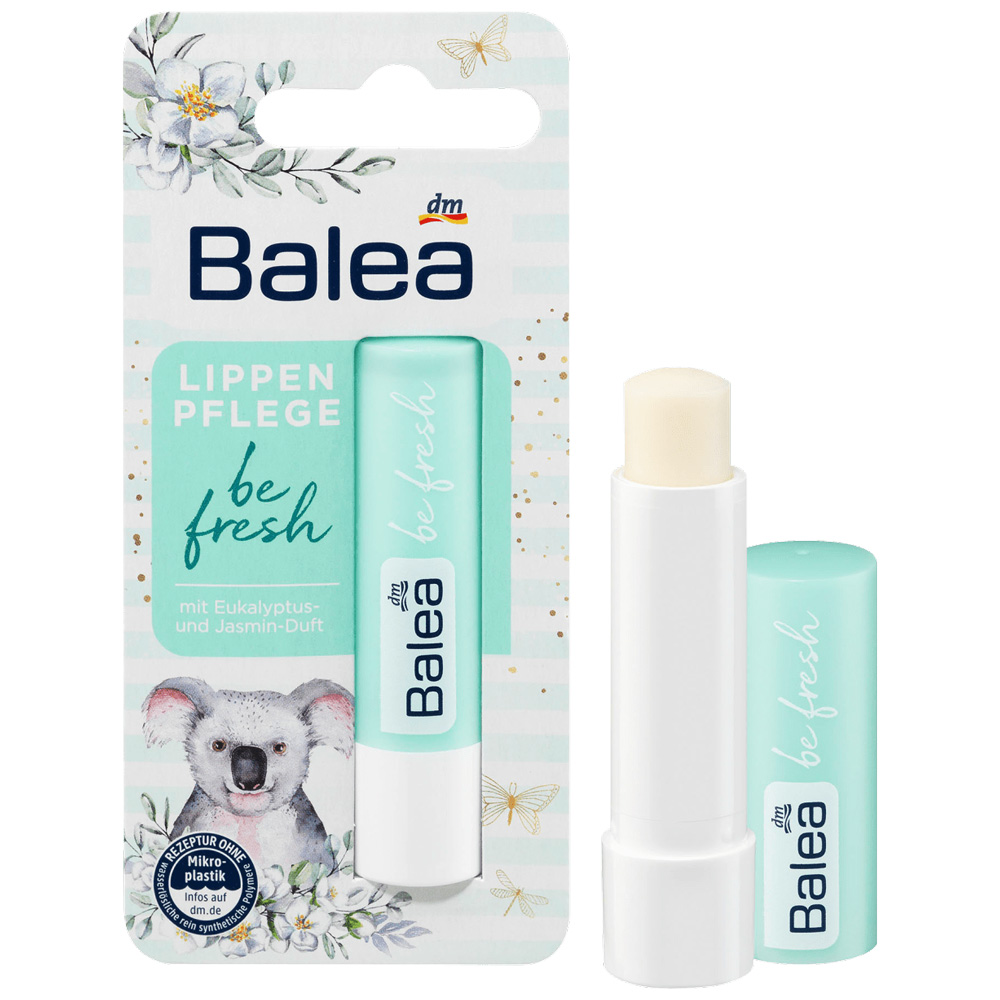 Le soin des lèvres Be Fresh de Balea garde vos lèvres souples. La formulation douce au beurre de karité, la cire d’abeille et l’huile d’olive nourrissante procurent une hydratation intense et prévient la peau sèche et gercée. En même temps, le baume à lèvres a une merveilleux parfum d’eucalyptus et de jasmin. Pour des lèvres qui vous invitent embrasser!