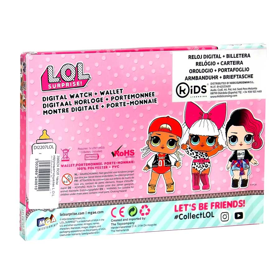 Coffret cadeau original comprenant une belle montre numérique et un portefeuille coloré avec lequel vous pouvez toujours connaître l’heure et vous promener en toute sécurité, tandis que vous êtes accompagné de vos mini-poupées préférées de la collection LOL Surprise.