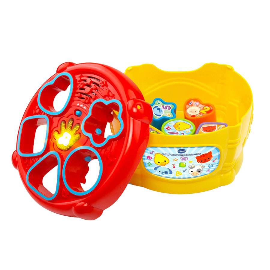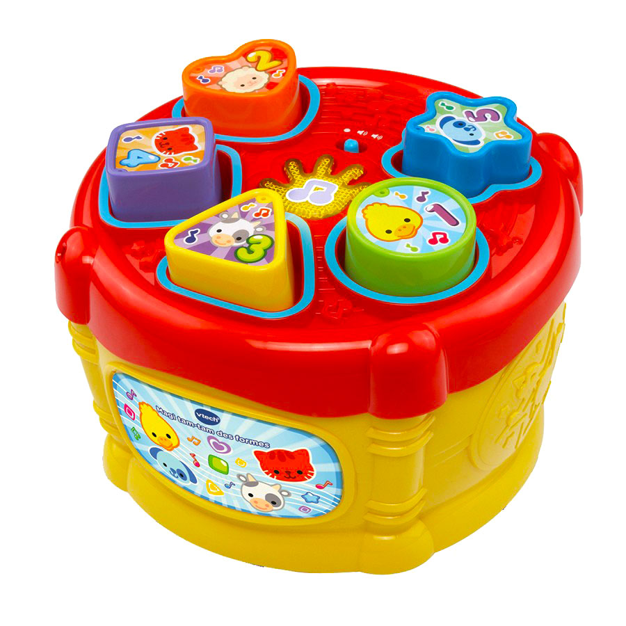 Il déclenche des sons rigolos en jouant du tam-tam et découvre les formes, les chiffres et les animaux grâce au trieur de formes intégré.