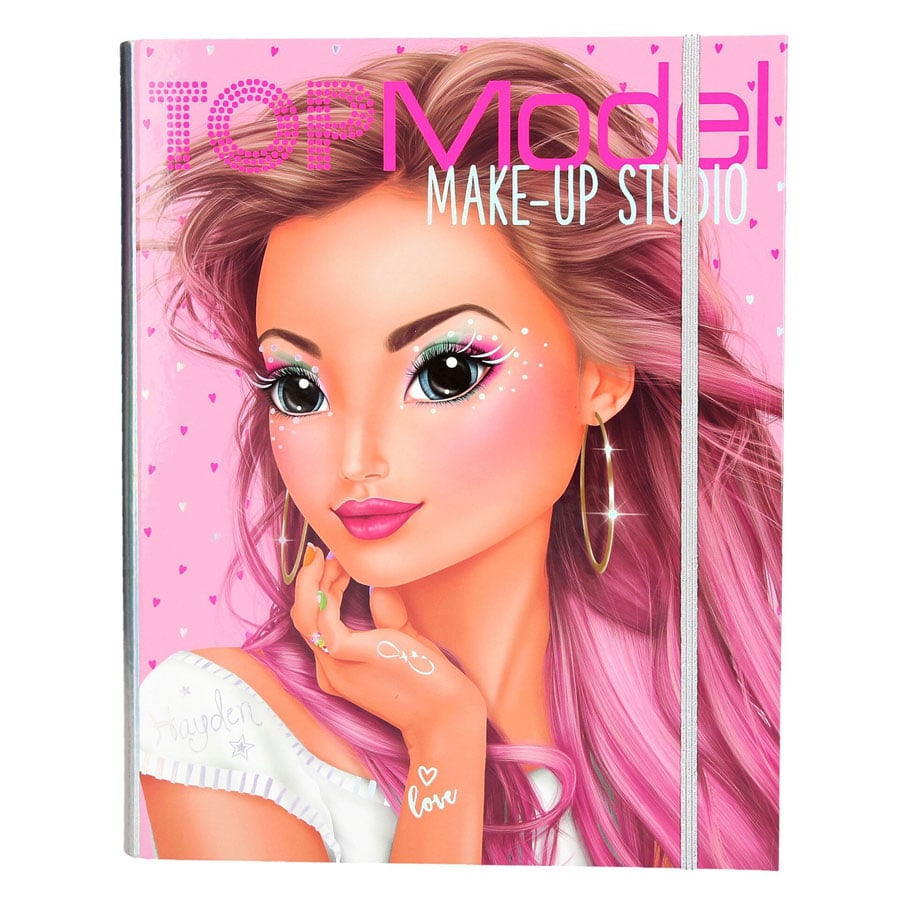 L’album est de très haute qualité afin qu’il puisse être utilisé longtemps. Le classeur en carton épais se ferme avec un élastique. À l’intérieur, à droite, un cahier avec les contours du visage des modèles. Le cahier est a la taille A5. À gauche, une palette de produits cosmétiques solidement fixée et fermée avec du plastique avec bouton. Un ensemble de produits cosmétiques comprend: 9 ombres à paupières, 3 brillants à lèvres, 3 crayons (eye-liner) et 4 pinceaux de maquillage.