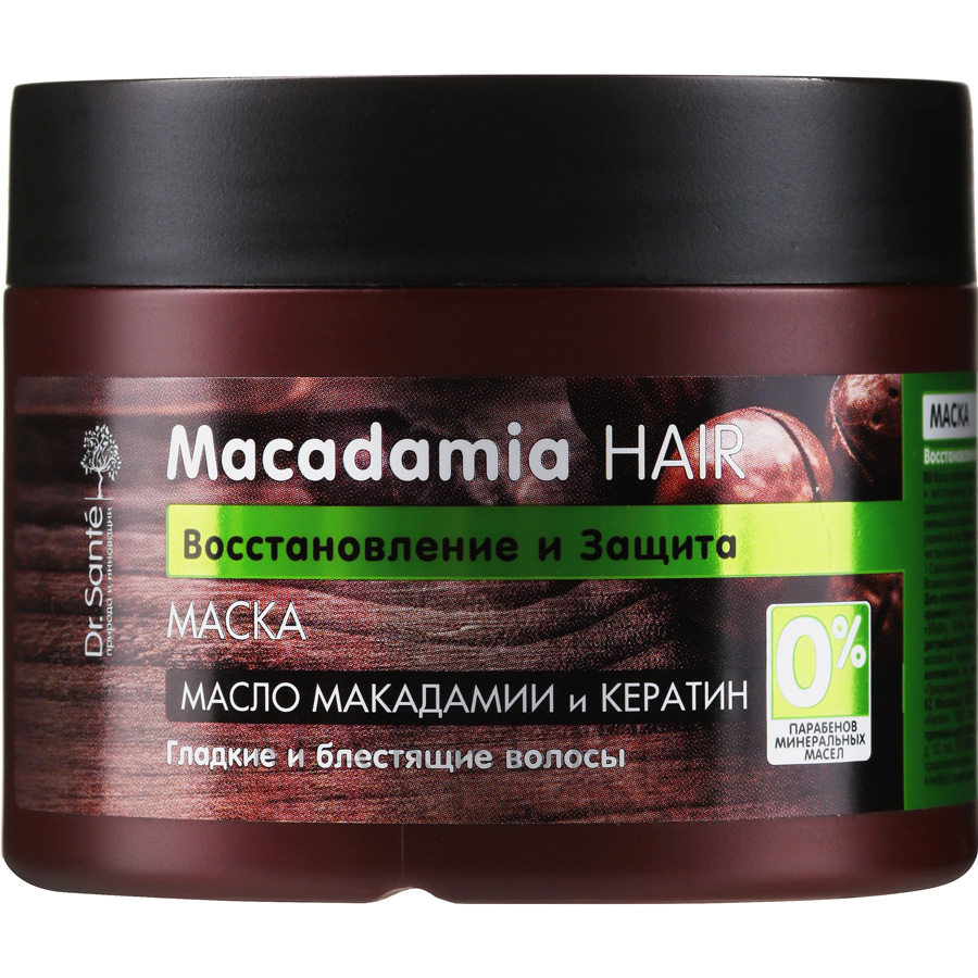 Le masque capillaire Dr. Sante Macadamia est formulé avec de l’huile de macadamia et de la kératine. Ces ingrédients fournissent une nutrition et une hydratation efficaces, aident à réparer les cheveux faibles et abîmés. Le produit est enrichi en huile de moringa, en huile de noix de coco et en extrait de fleur de Tiaré qui renforcent son effet.
