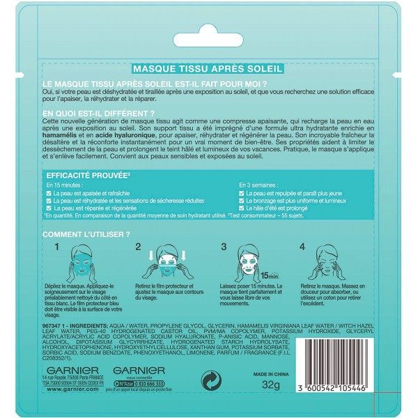 Masque Tissu Après-Soleil Ultra Hydratant/Régénérant ( Packaging Allemand )