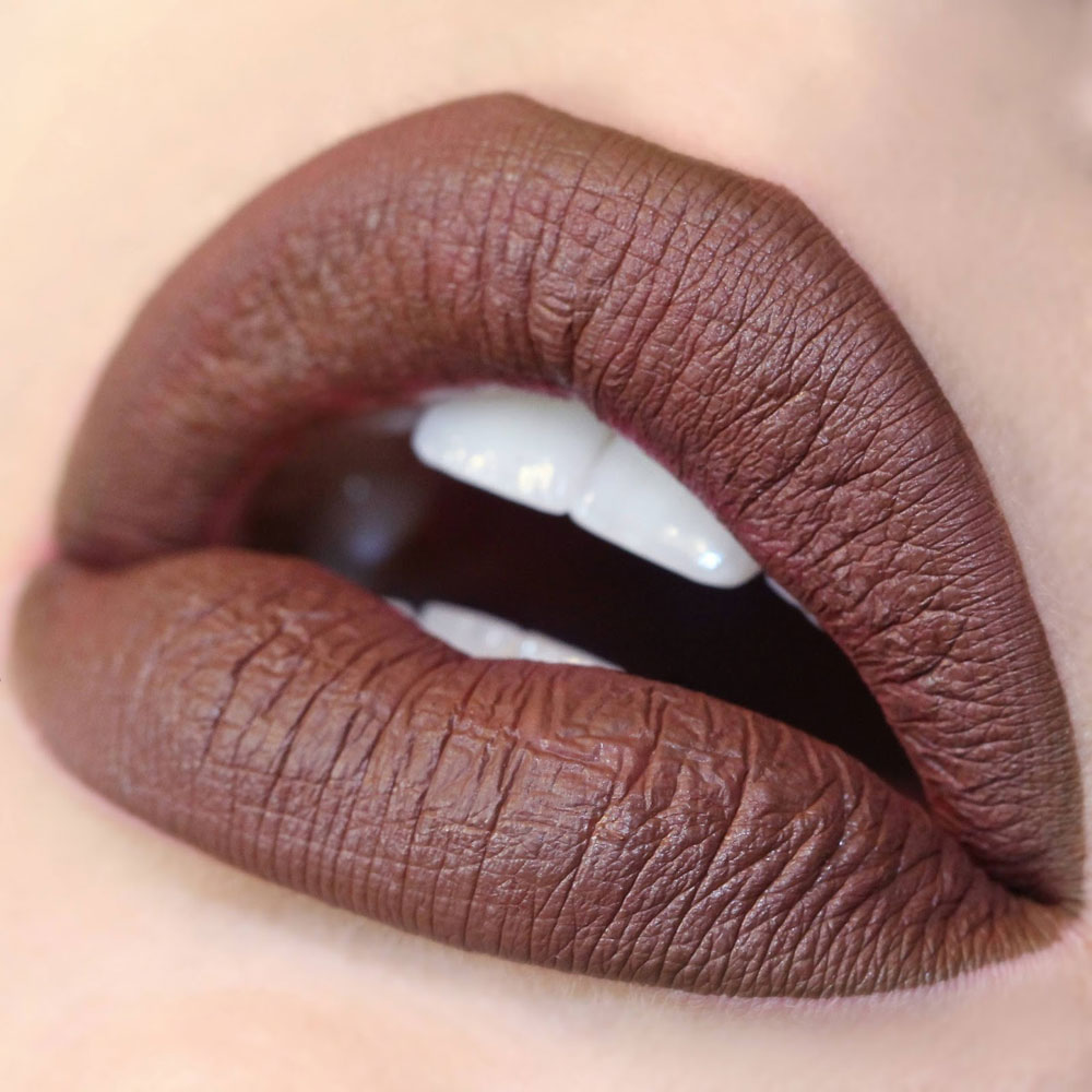 Rouge à lèvres mat longue tenue au parfum de chocolat chaud.