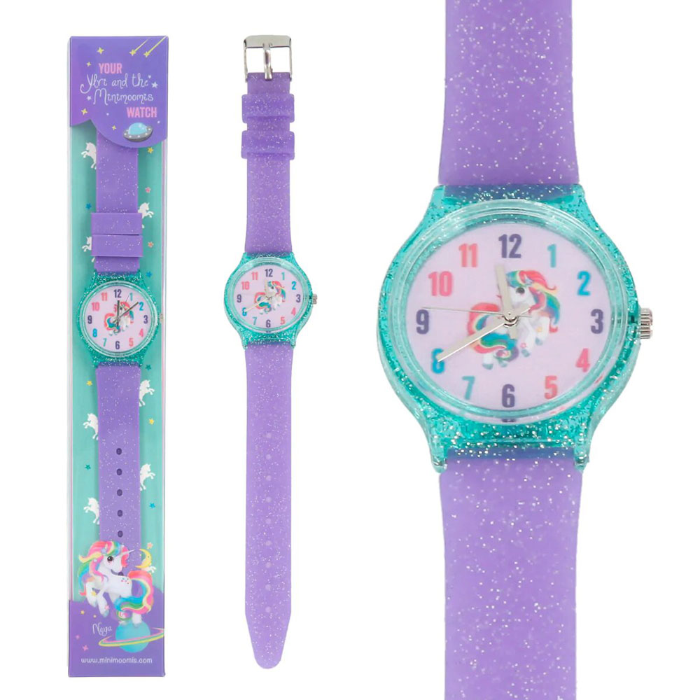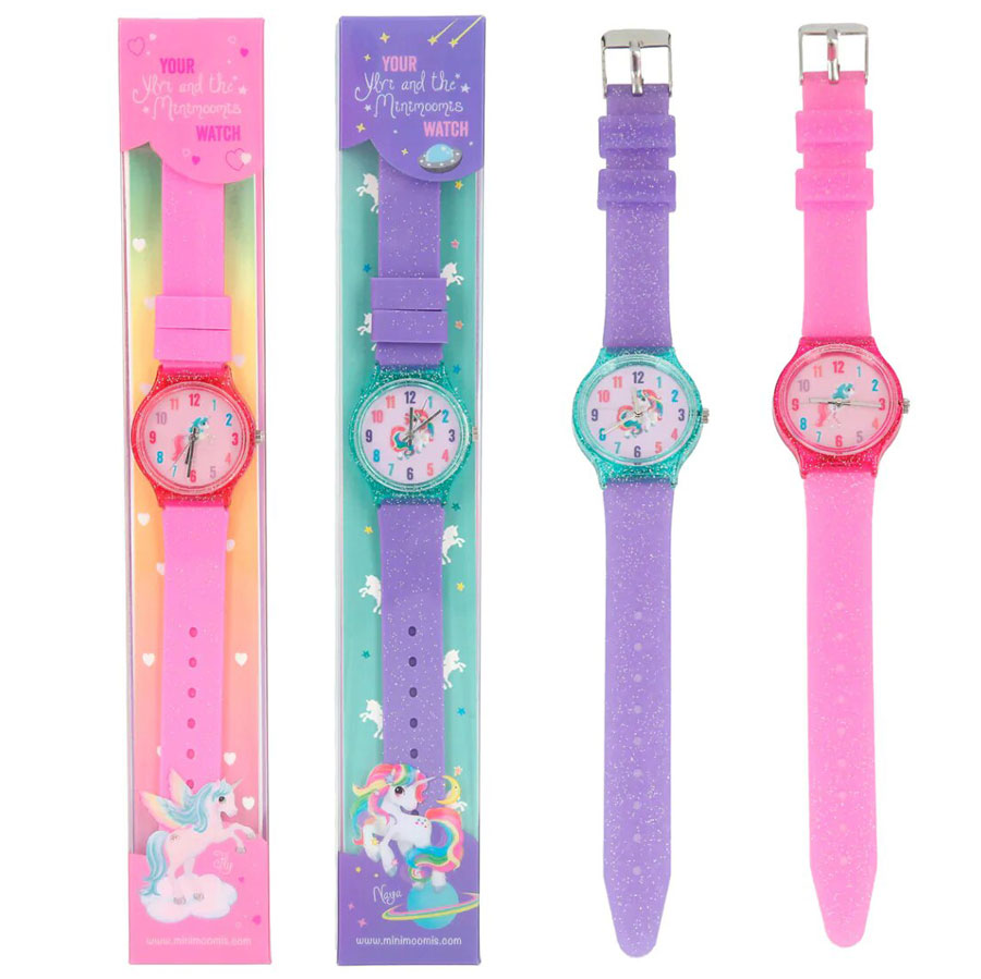 L’heure de la Licorne ! Les montres-bracelets en silicone Ylvi et Minimoomis ne sont pas seulement superbes, elles sont également résistantes aux éclaboussures et testées sans nickel. Pile bouton incluse.