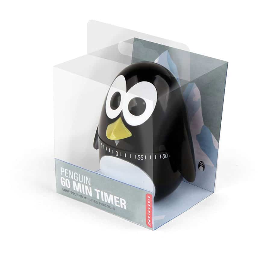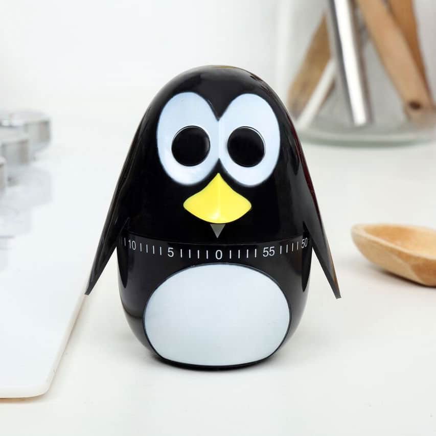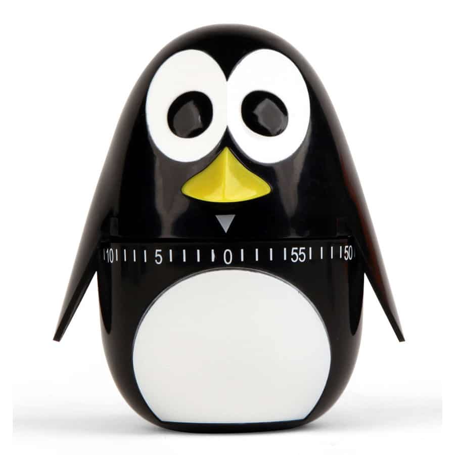 Une minuterie de cuisine adorable sous forme d’un pingouin aux yeux écarquillés surveillera et chronométrera vos recettes pour les rendre parfaits. Tournez la tête du pingouin pour régler l’heure. Minuterie va jusqu’à soixante minutes. Mécanisme en acier avec extérieur en plastique et pieds en caoutchouc.