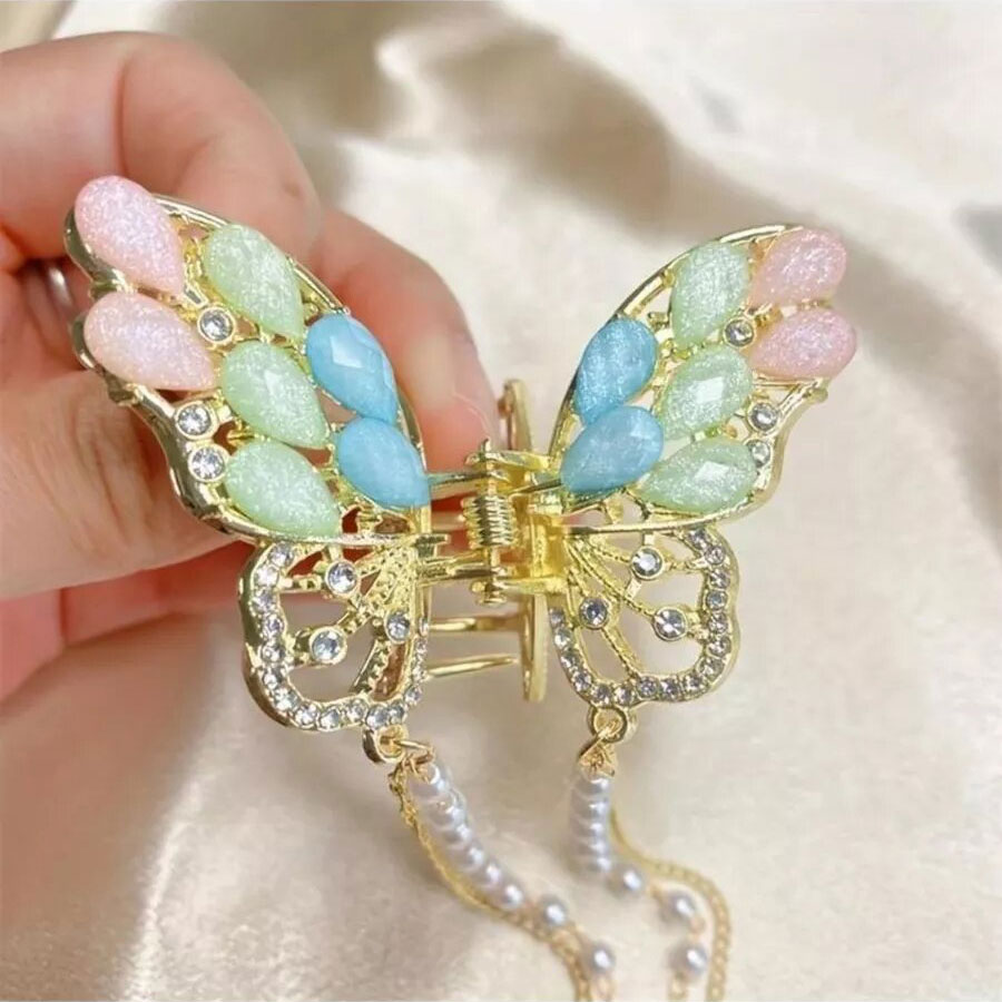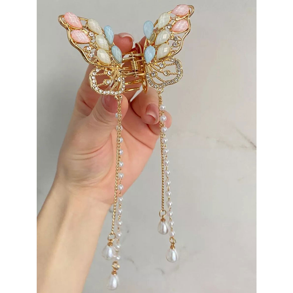 Magnifique pince à cheveux papillon avec strass et pendentif. La forme inhabituelle en forme de papillon sera originale sur vos cheveux. L’épingle à cheveux Crabe maintient fermement les cheveux et ne les blesse pas. Convient aux cheveux épais et bouclés. Un magnifique accessoire pour cheveux complétera parfaitement votre look et deviendra le point culminant de votre coiffure et ajoutera également de la tendresse et de la féminité à votre image.