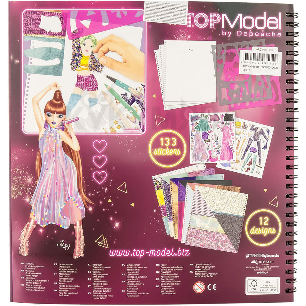 Le livre de coloriage TOPModel POP Star est un studio pour créer les images les plus lumineuses et les plus inattendues de Top Models dans le style des pop stars. Pour aider un jeune designer 6 pages avec des exemples pour l’inspiration, 23 pages avec les contours de modèles pour la créativité, 1 page avec une leçon, 12 pages d’impression de tissu sur papier, 2 pochoirs, 2 feuilles avec des autocollants (133 autocollants). À l’intérieur, il y a des œuvres de vrais artistes-designers qui aideront et inspireront la créativité. Le livre à colorier sur une reliure spirale est fait de papier épais de haute qualité.