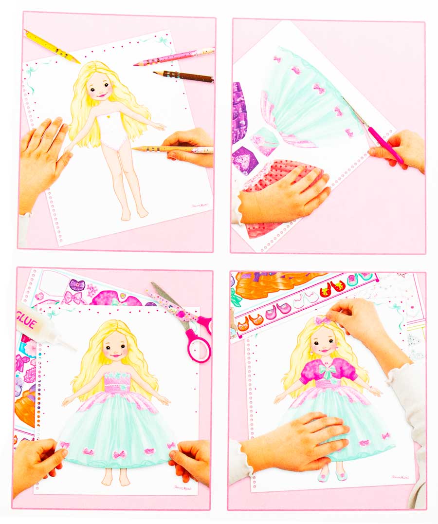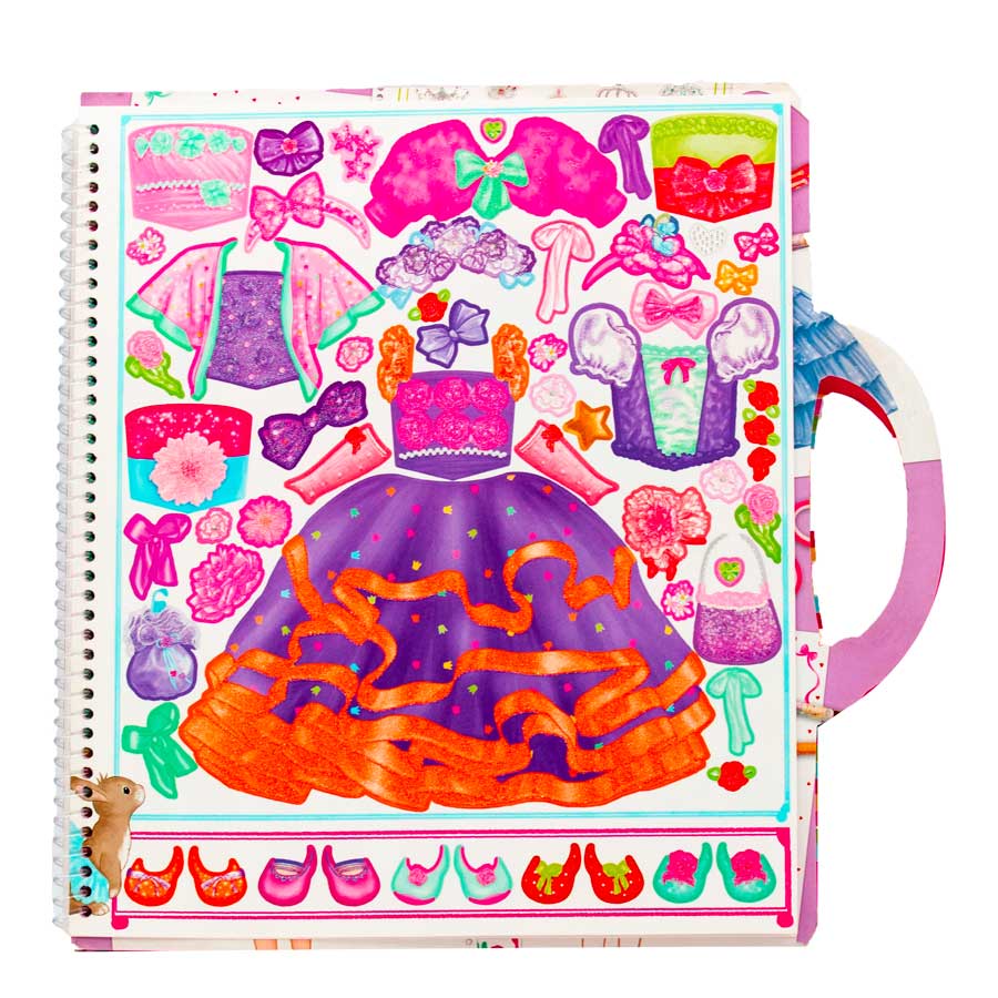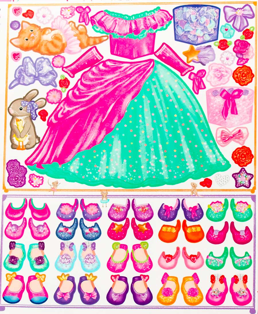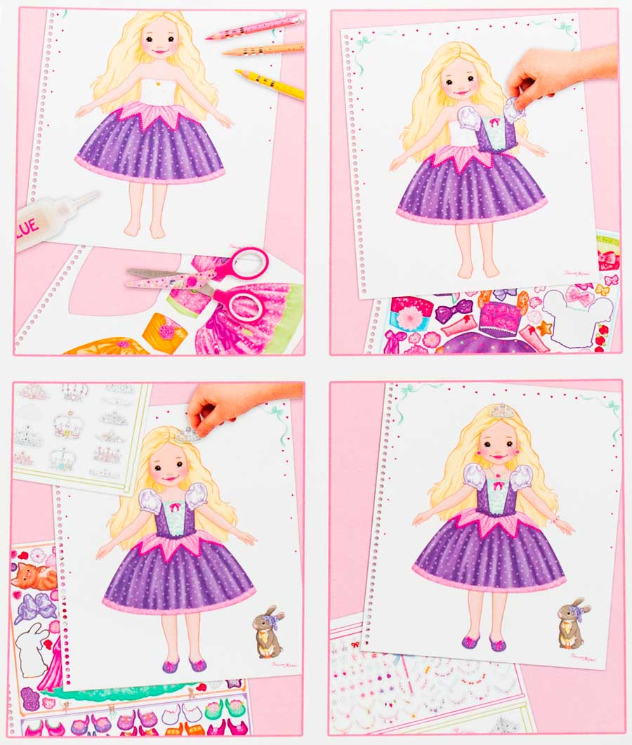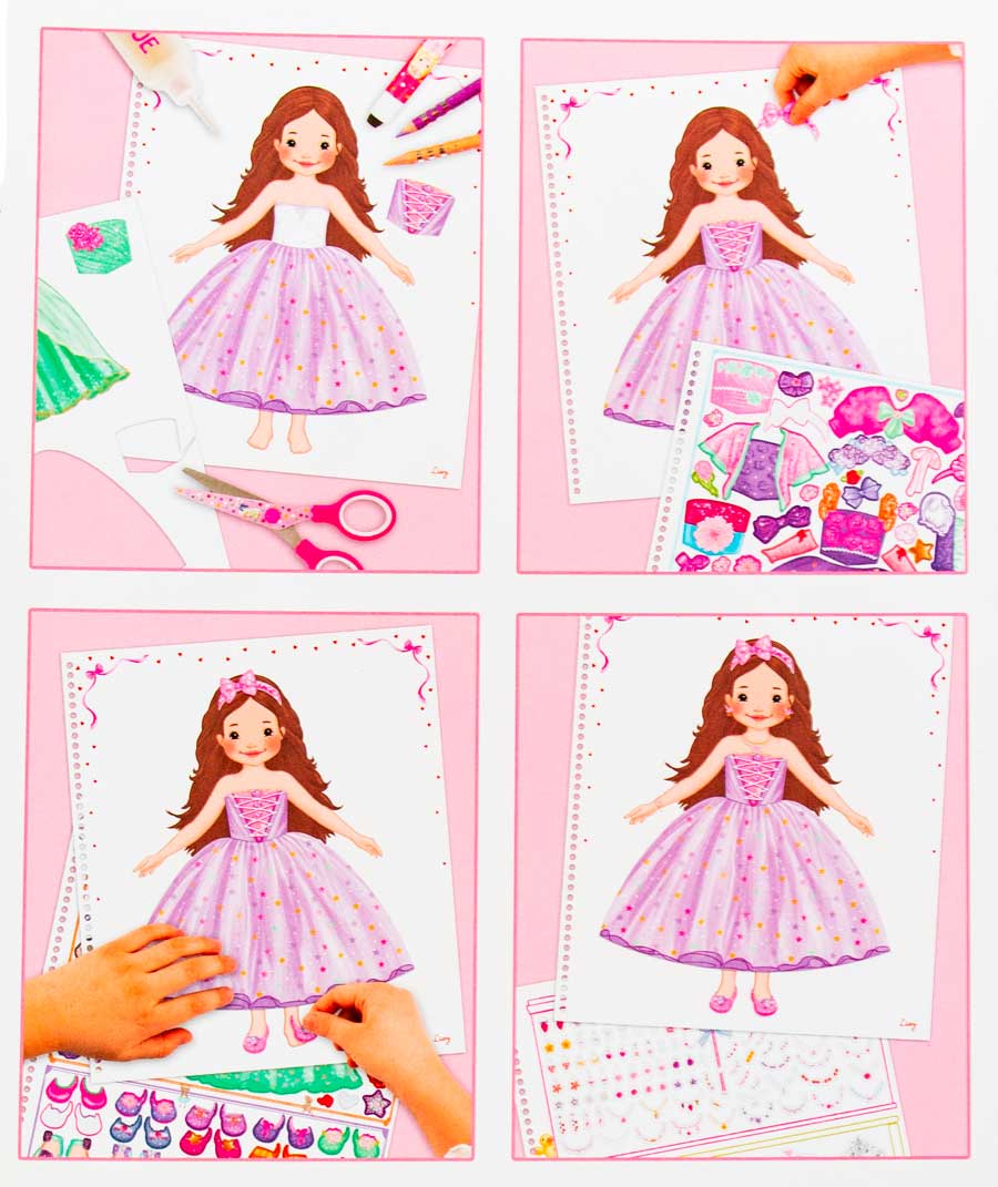 Cet album de coloriage est sous forme d’un sac sur un ressort en plastique. Dans la coloration se trouvent de jolis contours de princesse et des autocollants (270 pièces) pour créer de magnifiques robes. Cette série est conçue pour les petites filles qui viennent d’apprendre à dessiner, habituées à la précision. Cet album sera à la fois une activité agréable pour l’enfant et le développement de ses capacités créatrices.