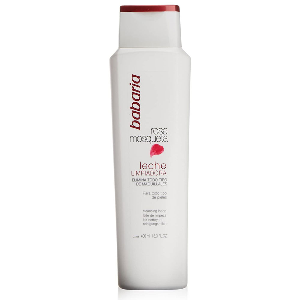 Babaria Rose Musquée Lait Démaquillant. Enlève tous les types de maquillage, même les plus résistants. Combine les propriétés de l’Huile de Rosa Mosqueta et de l’Hamamélis, de la Malve, de la Camomille et du Tilleul. Combinaison capable de retenir et d’absorber l’eau, évitant la déshydratation, et ayant également des effets hydratants et filmogènes sur la peau. Testé dermatologiquement. Non testé sur les animaux.