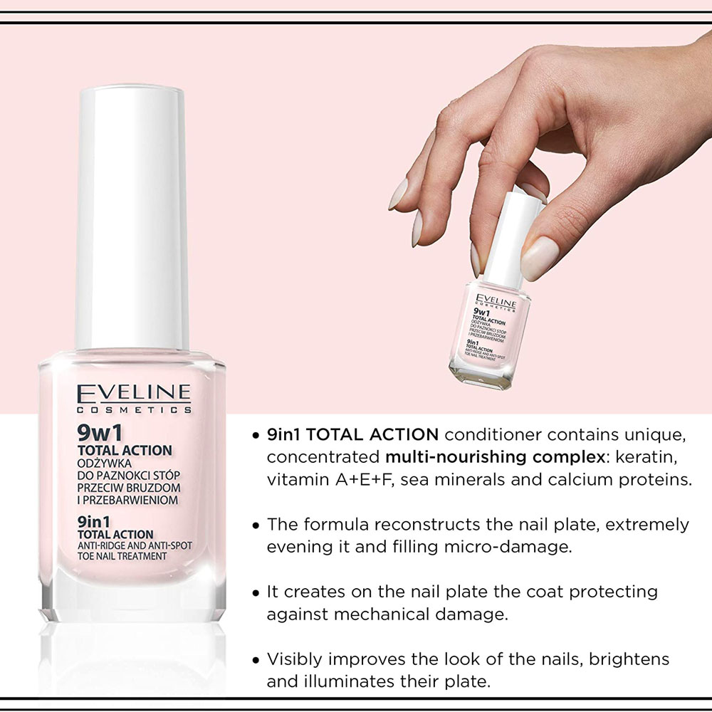 Le soin 9 en 1 à action totale contient un complexe multi-nourrissant unique concentré : kératine, vitamine A + E + F, minéraux marins et protéines de calcium.