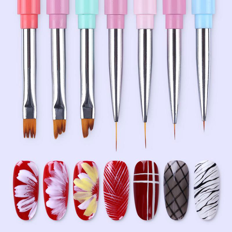L’ensemble de pinceaux à ongles plats peut être utilisé pour de longs coups de fluide; détaillant l’utilisation du pinceau pour nail art pour un travail complexe; stylos à points pour divers travaux de pointage.