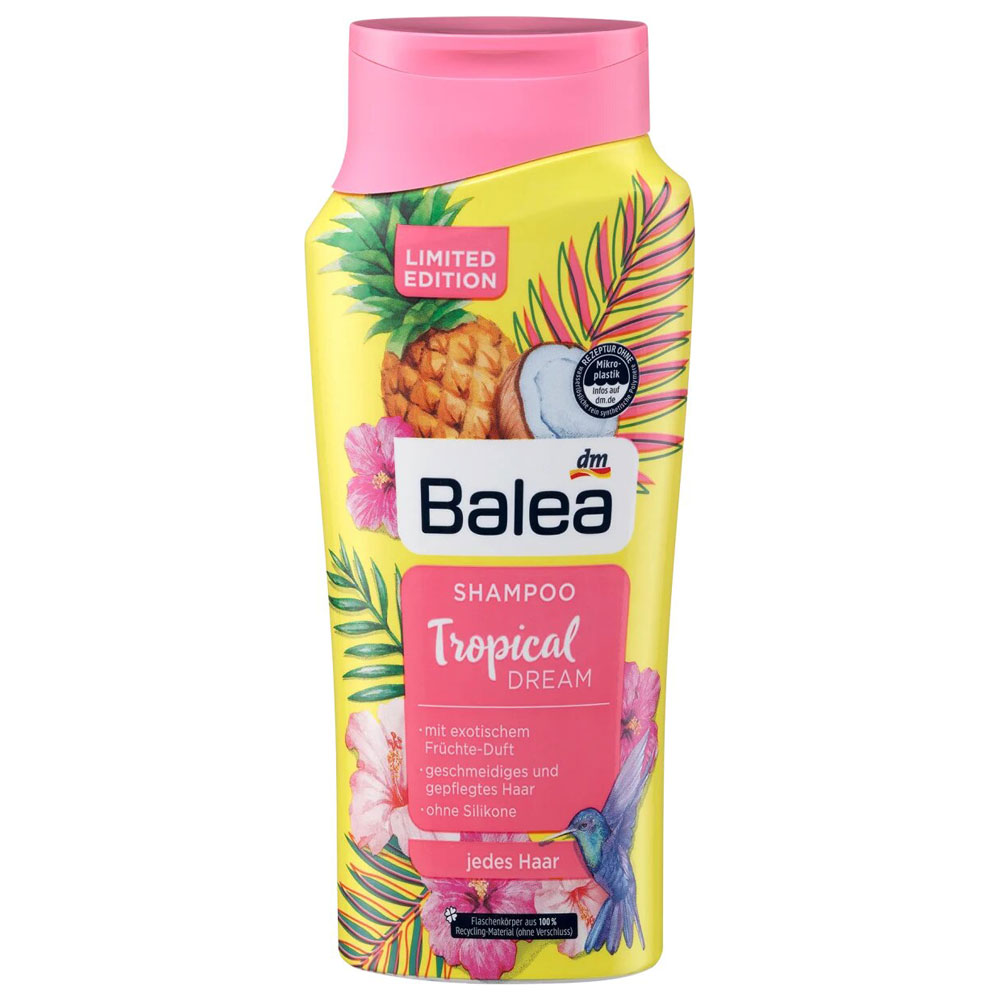 Le shampooing Balea Tropical Dream convient à tous les types de cheveux. Le shampooing nettoie en douceur, hydrate et laisse les cheveux brillants et soyeux et d’apparence saine. La formule douce prend grand soin de vos cheveux grâce au complexe à la vitamine B3 et à la provitamine B5. L’édition limitée avec un arôme d’été exotique de fruits de cocktail est parfaite pour les chaudes journées d’été. Offrez-vous une gâterie tropicale parfumée avec le shampooing Balea !