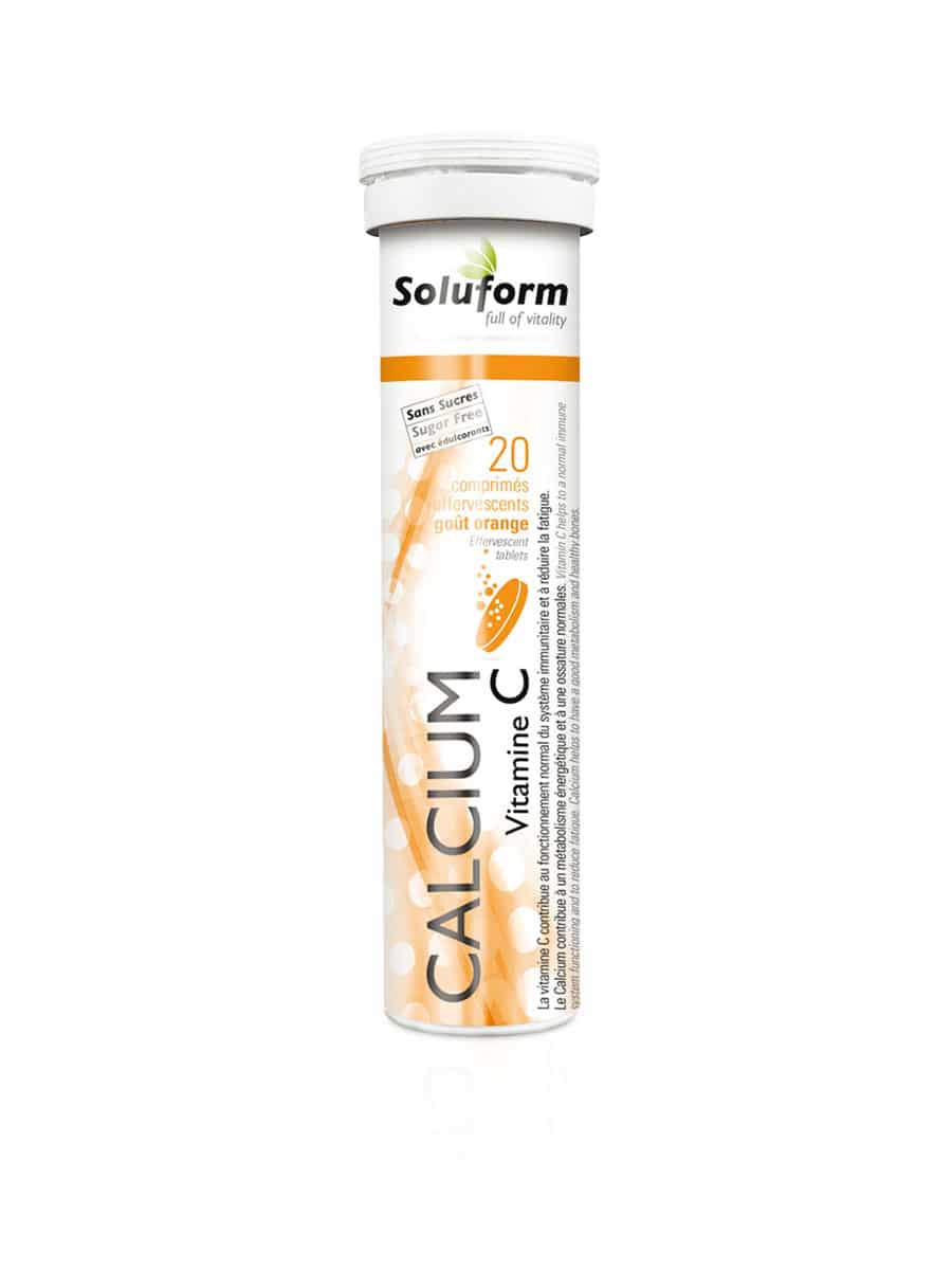 SOLUFORM Calcium + vitamine C est au goût d’orange sans sucre.
