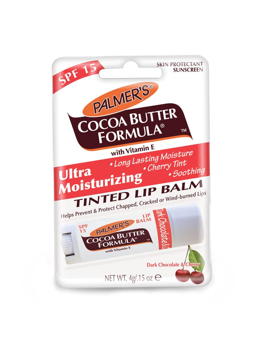 Le baume à lèvres teinté ultra hydratant pour les lèvres Chocolat noir et Cerise de PALMER’S, enrichi en vitamine E et doté du SPF 15, aide à prévenir et à protéger les lèvres gercées et abîmés par le vent. Une application douce et une taille pratique en font le baume à lèvres parfait toute l’année, laissant les lèvres douces avec une subtile teinte rouge cerise.