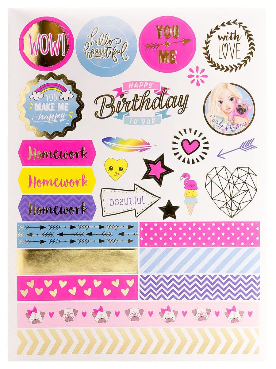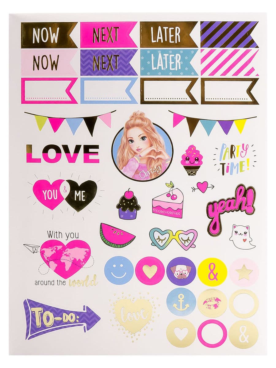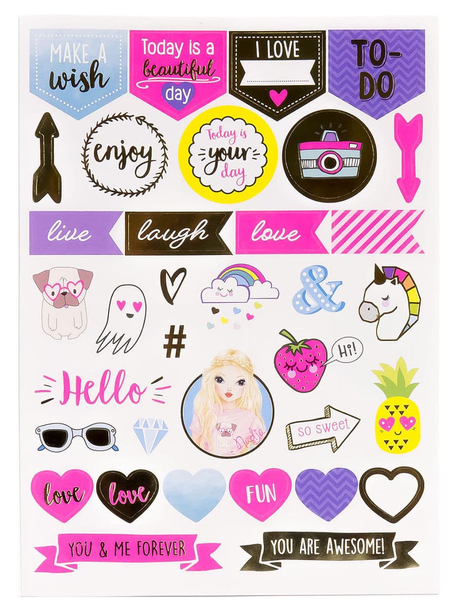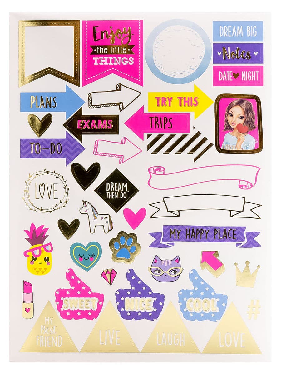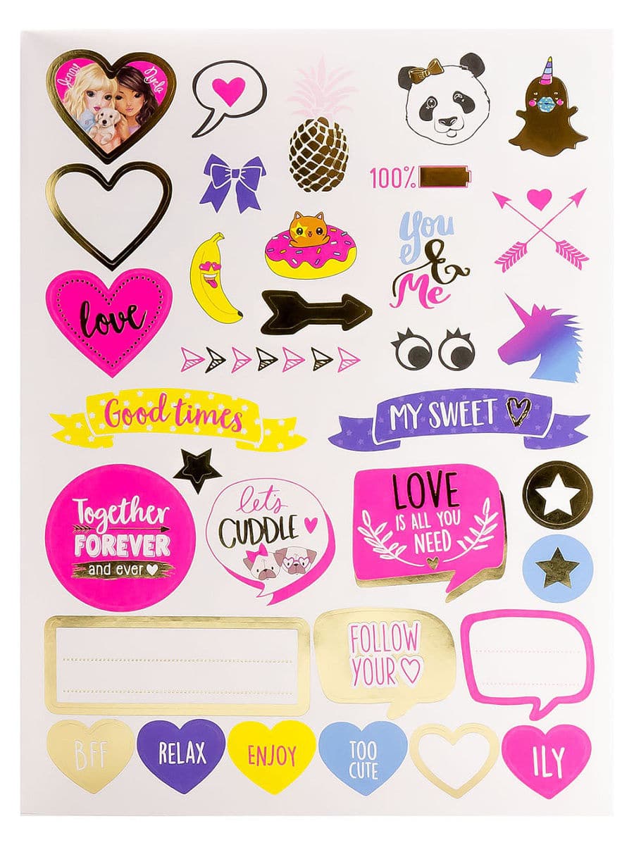 Un album de stickers avec des images de Top Models, d’animaux de compagnie mignons, de personnages de dessins animés drôles, d’émotions drôles, d’émoticônes, de phrases inhabituelles, de signatures et de messages pour créer un design unique et lumineux pour un journal, des carnets, des couvertures, des cartes de visite et des notes. La couverture de l’album est réalisée dans des couleurs néon lumineuses avec des éléments en feuille d’or. À l’intérieur, 16 pages recto avec des autocollants (325 motifs d’autocollants), 2 feuilles de carton pour retirer les objets.