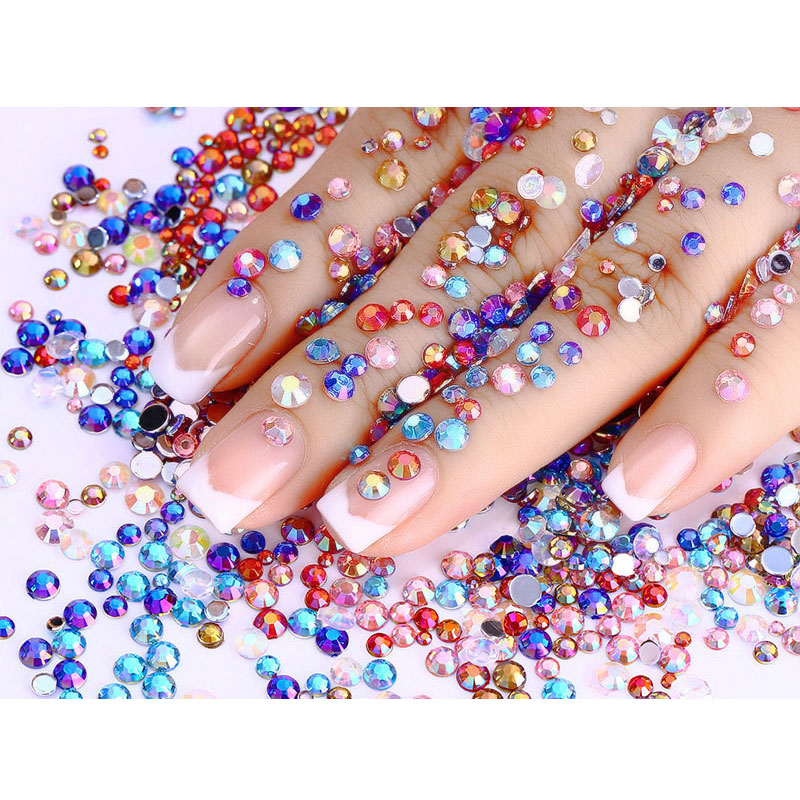 Assortiment de strass ronds de différentes couleurs et tailles.