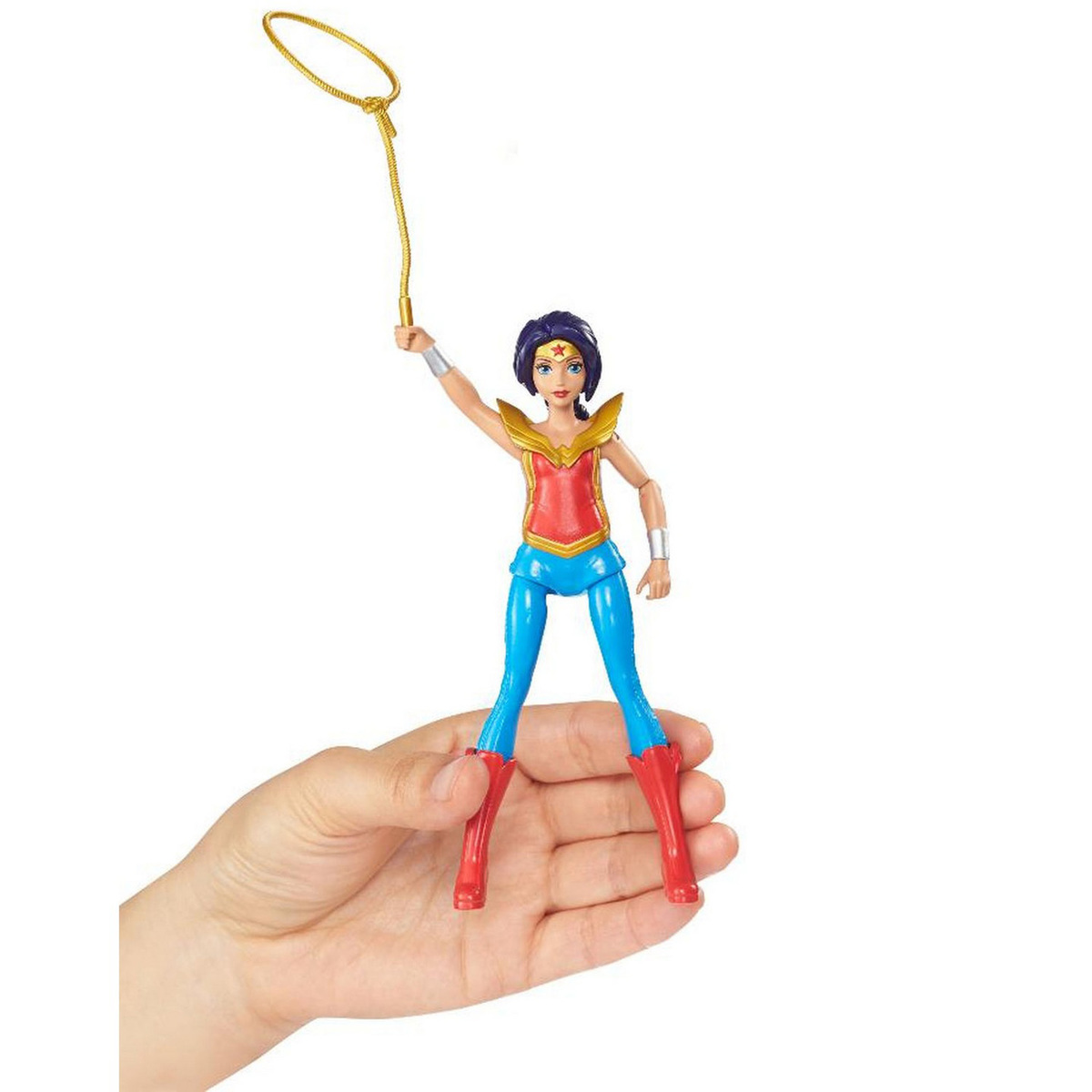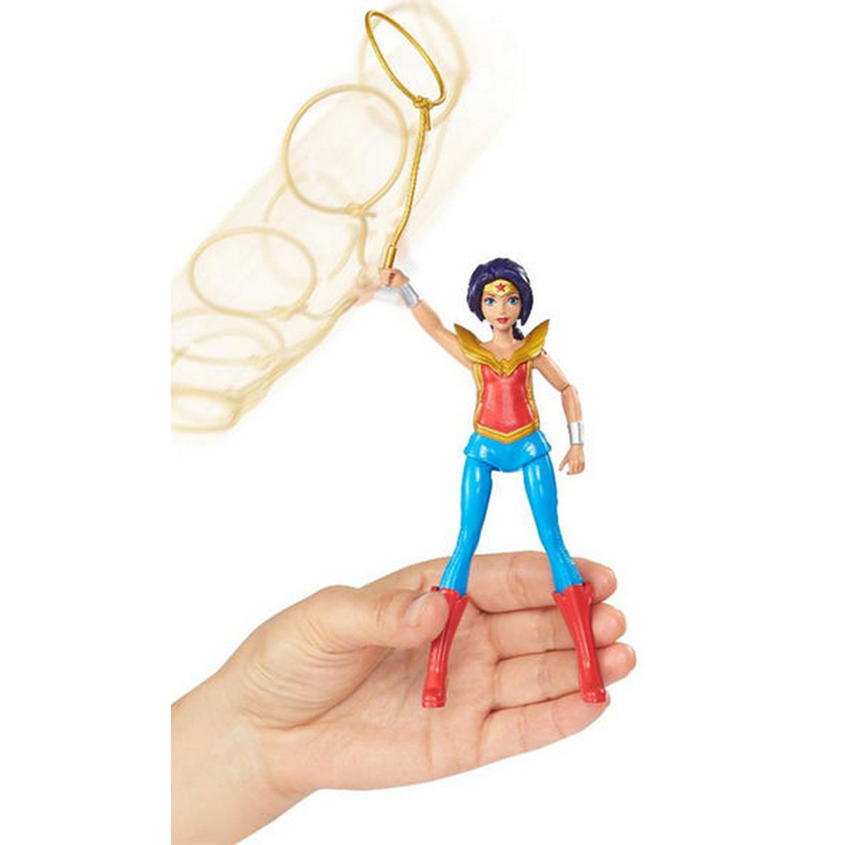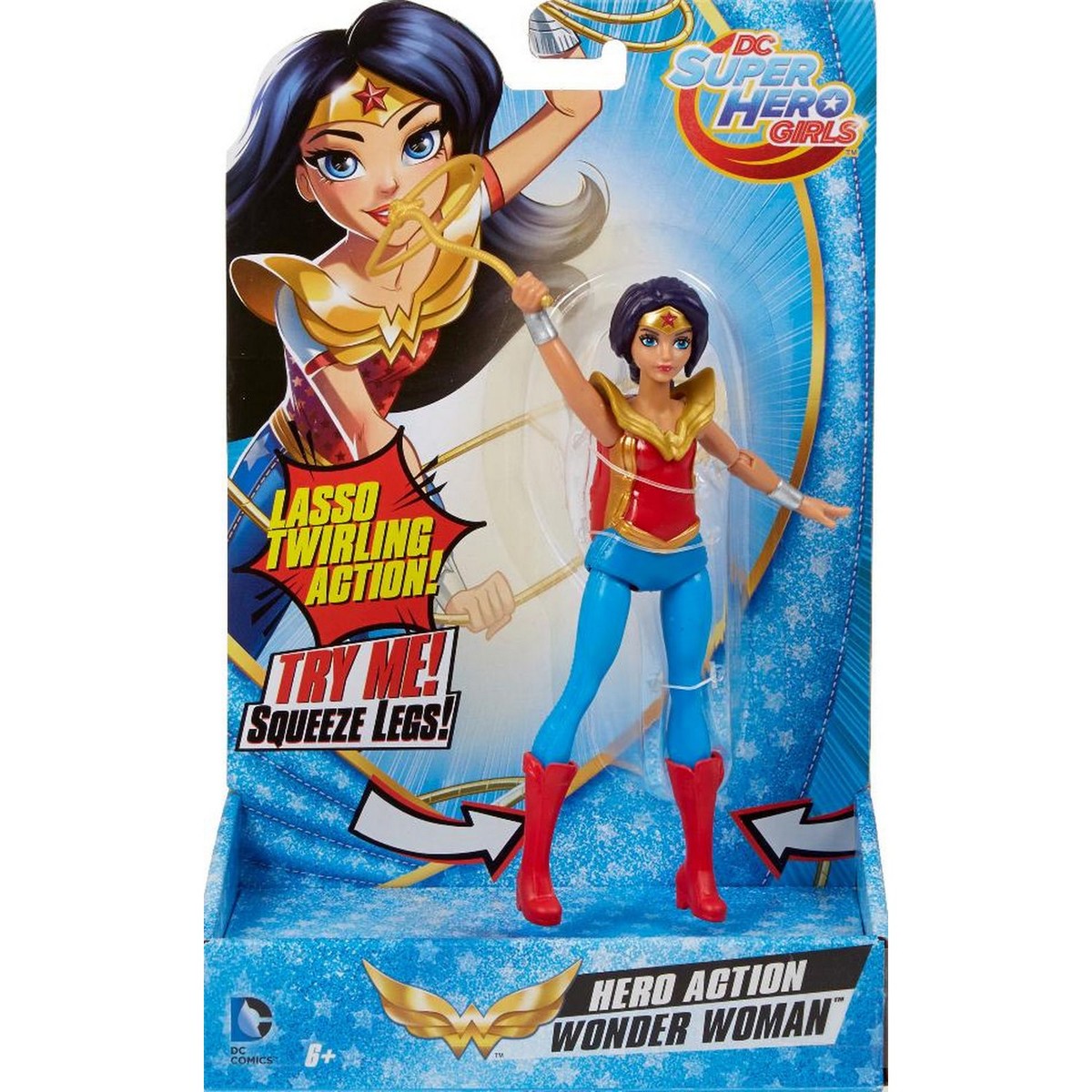 Libérez votre héros intérieur avec les figurines DC Super Hero Girls avec mouvement activé par les enfants, les jambes de la figurine Squeeze Wonder Woman pour voir son bras faire tourner son Lasso de la vérité dans les airs, la figurine de 6 pouces porte un look signature en rouge et bleu avec des accents inspirés des armures dorées, des poignets argentés et son diadème étoilé.