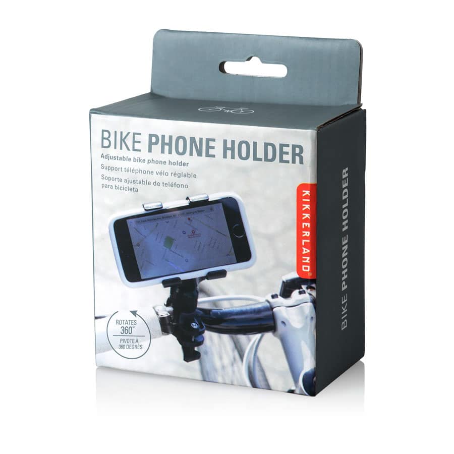 Ayez accès aux cartes et aux messages avec ce porte-vélo pour téléphone de Kikkerland. Fixation sur votre guidon, rotation à 360 degrés qui permet une utilisation horizontale ou verticale, tandis que la poignée antidérapante garantit la sécurité de votre téléphone. Le clip convient à la plupart des téléphones et est facile à installer et à retirer.