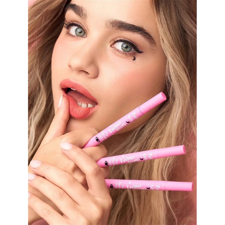 Votre arme secrète est l’eyeliner double embout 7DAYS B.COLOUR / 03 DUSTY MOON. D’une part – un pinceau noir et de l’autre – un timbre-lune. Avec eux, vous pouvez créer des maquillages universels pour tous les jours, pour les fêtes et les séances photo. L’eye-liner Stamp offre une couleur noire riche et une couverture super longue durée qui ne tache pas, sèche rapidement et reste riche et définie toute la journée.